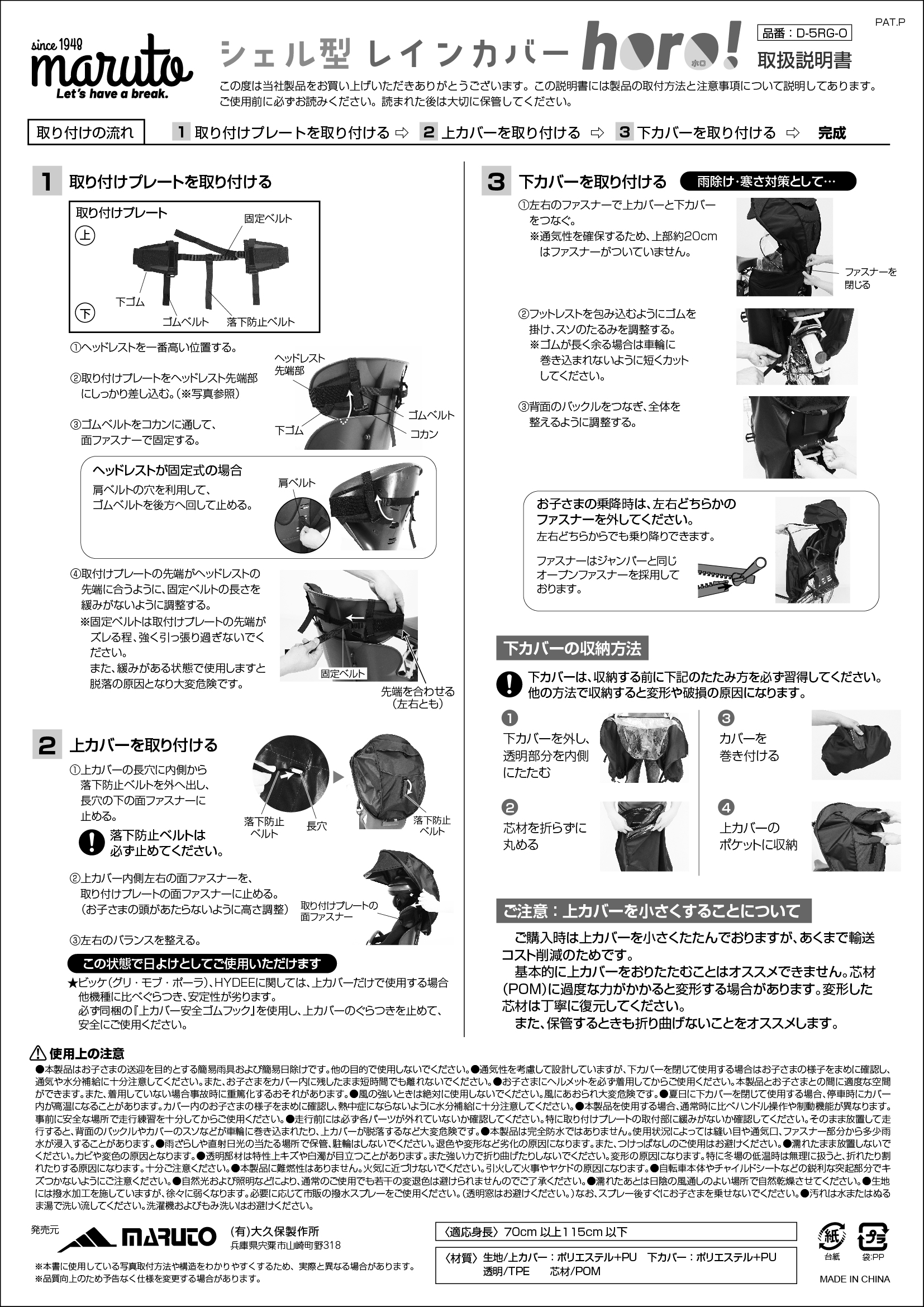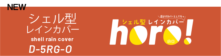 シェル型レインカバーhoroのver.2 D-5RG2-O は、どこで購入できますか?とのご質問をよくいただきますが、現在バージョン1のD-5RG-Oからバージョン2のD-5RG2-Oにランニングチェンジ中です。弊社では販売店様の在庫までは把握しておりませんのでお答えできません。ご理解、ご容赦ください。