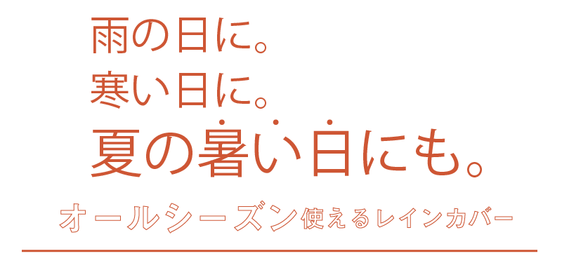 | 商品の特徴 | ・夏でも「日よけ」として使えるレインカバー ・オールシーズン使えるレインカバー ・型崩れしにくいー ・乗せ降ろしラクラク ・おしゃれな3カラー |