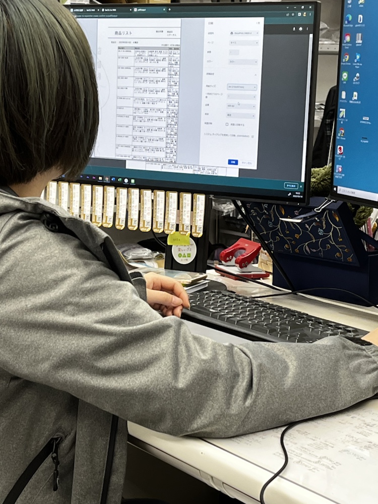今日はEC担当、兼デザイナーのお仕事の一コマです。中小企業ある有るかもしれませんが、メンバーは何らかの仕事を掛け持ちしています。