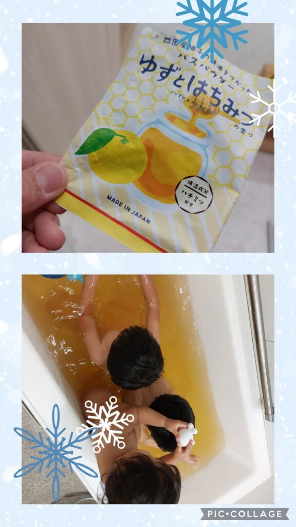 う…すごい濃い色。お風呂なかなか入ってくれない時でも、入浴剤入れるよ!って言うとすぐ来てくれるのでちょっと助かる。