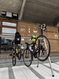 久しぶりの輪行で後輪のセットに少し手間取りましたが、まずはホテルに向かい荷物を預けていざ出発〜
