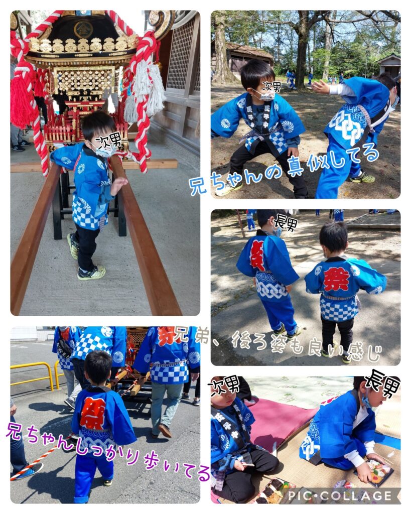 そして二日後、神社の祭りに参加。子供会で小学生が子ども神輿を引っ張ります。