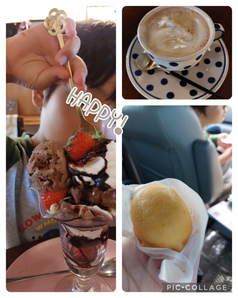 古民家カフェでコーヒータイム!長男はチョコパフェ!寄らせてもらったのは「つかのま」様です。
