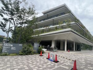 「うめとぴあ」世田谷区保健医療福祉総合プラザの通称です。歌人で医師で有名な斎藤茂吉さんの石碑がひっそり、歴史のある施設と感じながら、あまりの素晴らしいい建物に感動しながら、、。ここが待ち合わせの場所です。