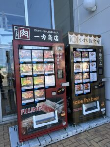 238号線を南下?していると「雄武の道の駅」があります。お店の前に珍しい「お肉の自動販売機」がありました。コレが有れば、24時間バーベキューが出来る!