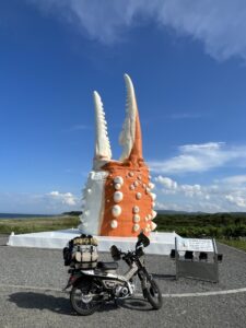 A commemorative photo of the port “Crab Claw Objet” in Monbetsu City is a must.