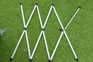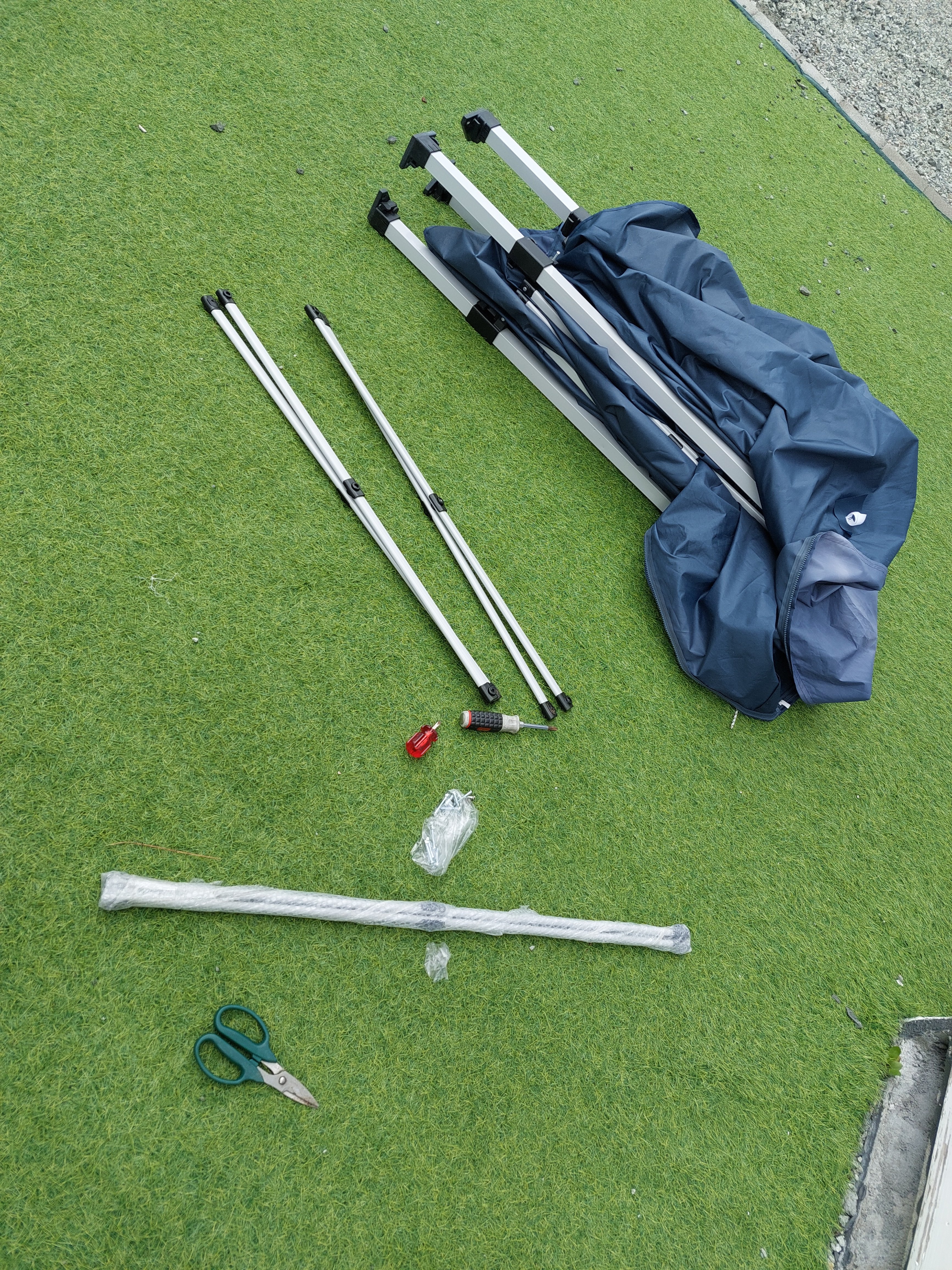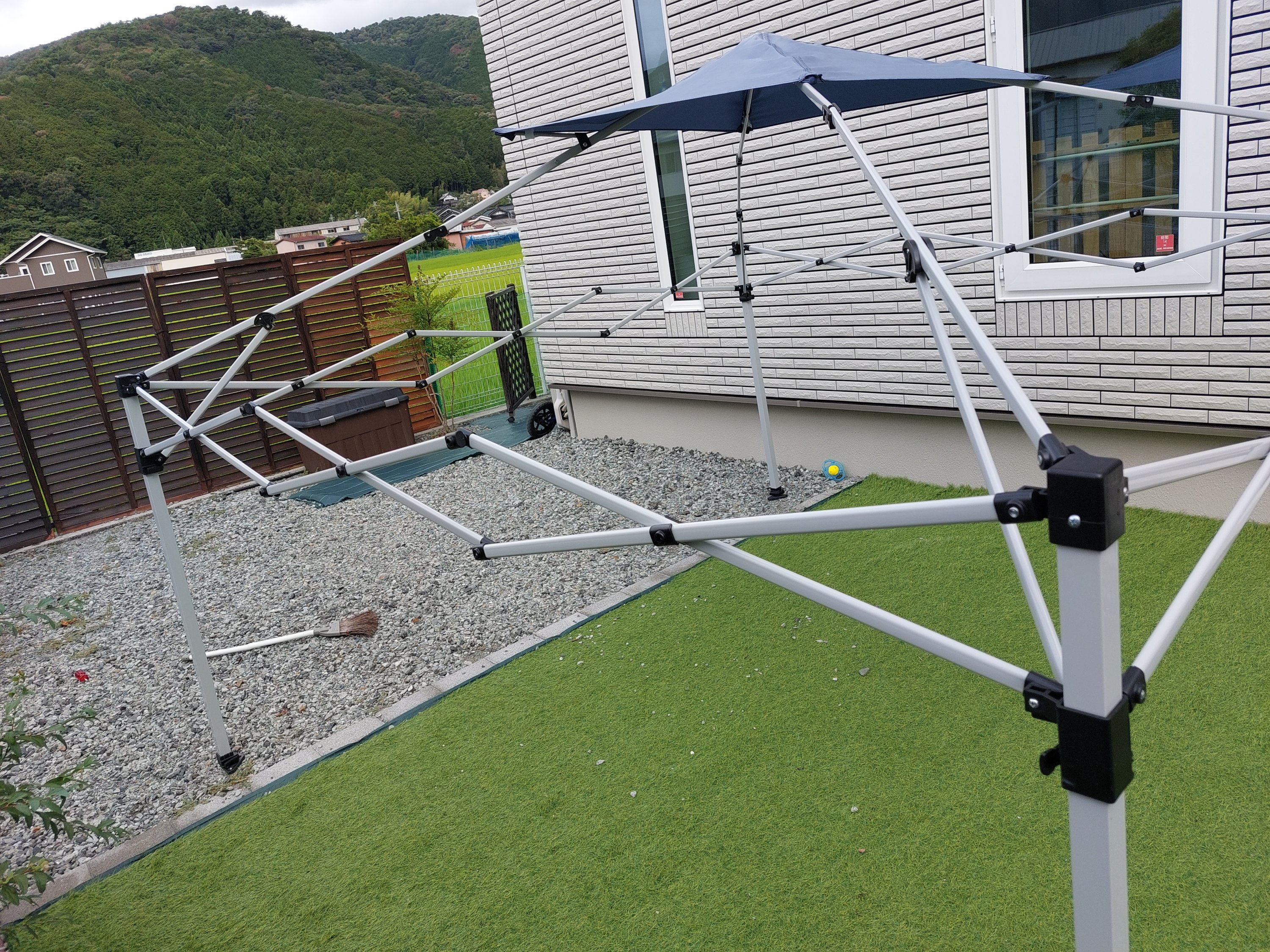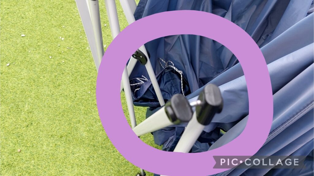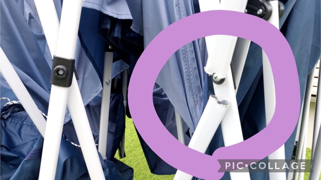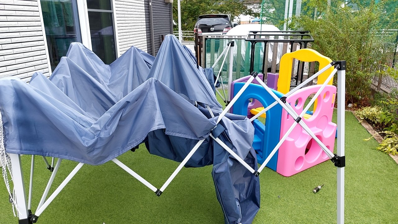 こんな感じで、上のテント生地部分残しつつ壊れた骨組みを取り除いてみました( ̄▽ ̄;)