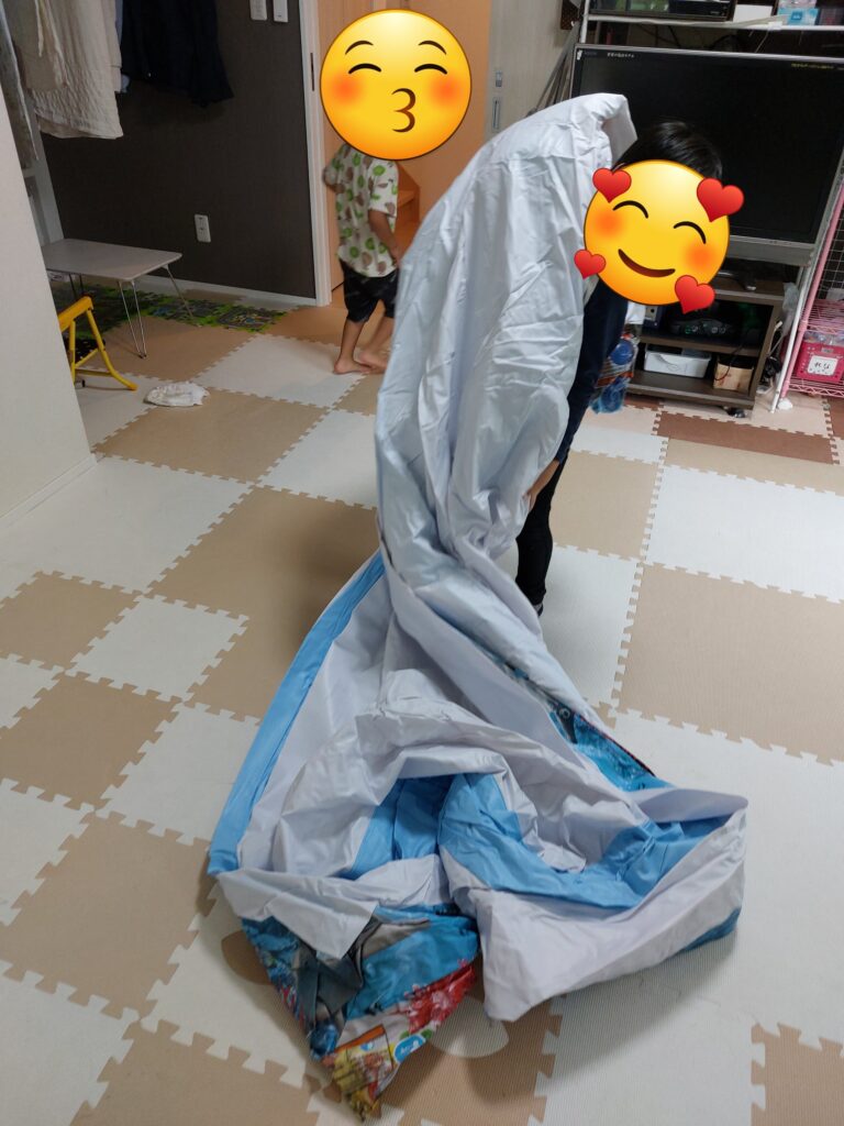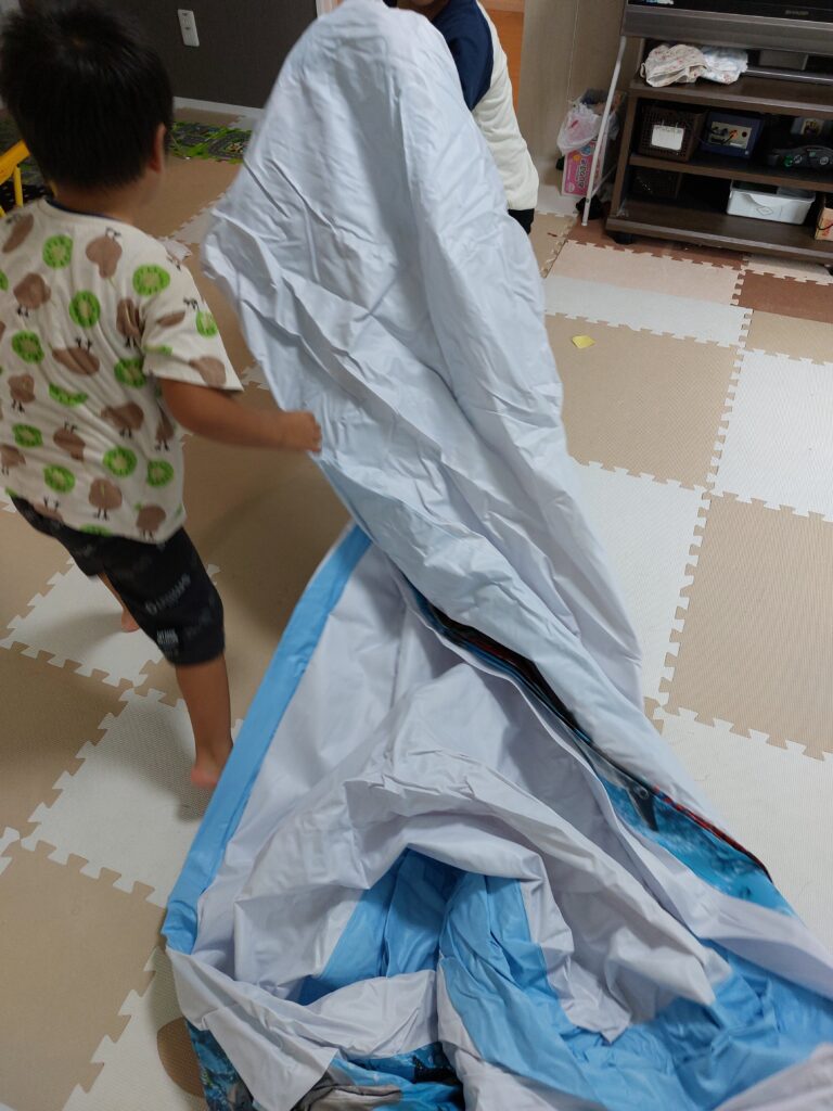 テントとプールあるのに…台風が近づくために強風…無理せず天気いい日にふくらませて遊びましょう(*´ー`*)