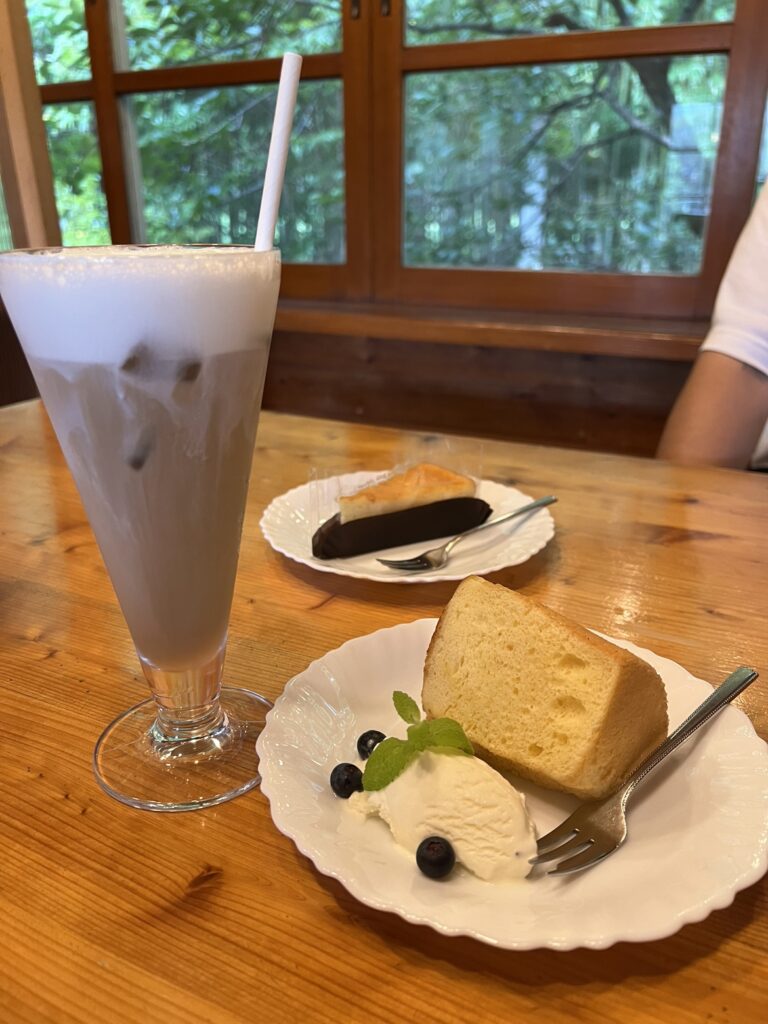私は、カフェオーレとシフォンケーキを夫は、スマトラ・マンデリンコーヒーとチーズケーキを選択。