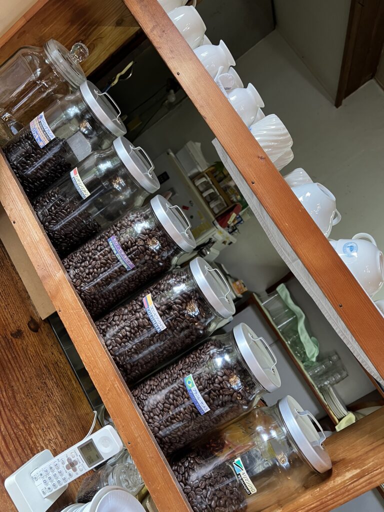 こちらでは、コーヒー豆の量り売りやドリッパーなどの用品も販売されています。夫がスマトラ・マンデリン豆を気に入ったとのことで挽いた豆を購入。お家にコーヒーミルがない方でもおいしいコーヒーを味わえます。