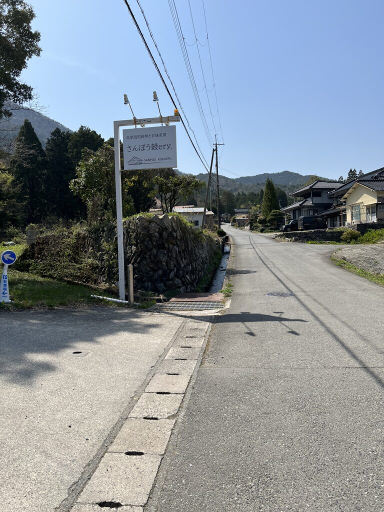 少し進むとさんぽう穀eryさんの看板が見えます。