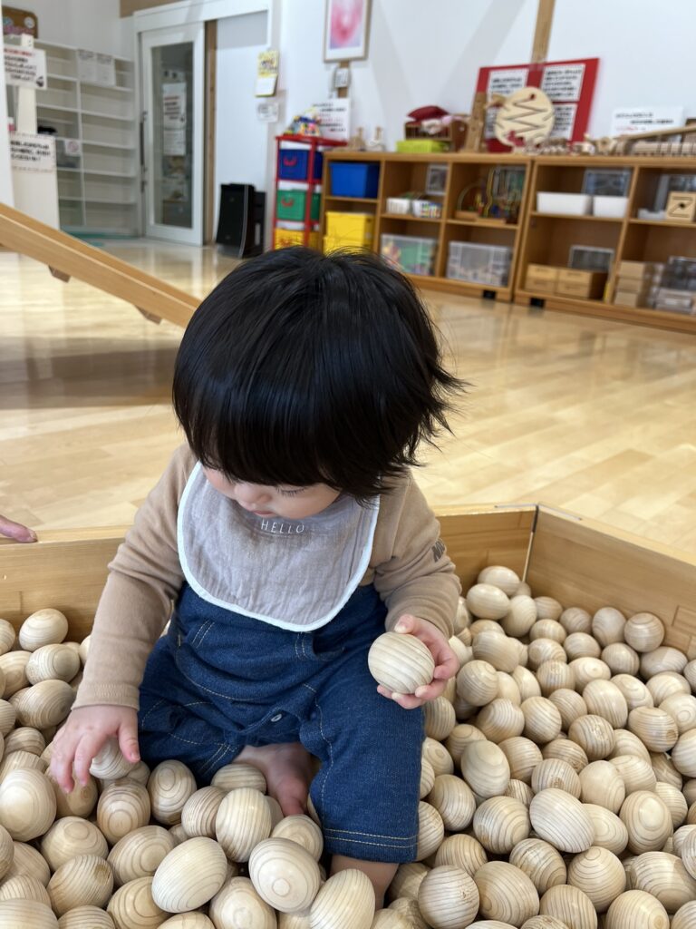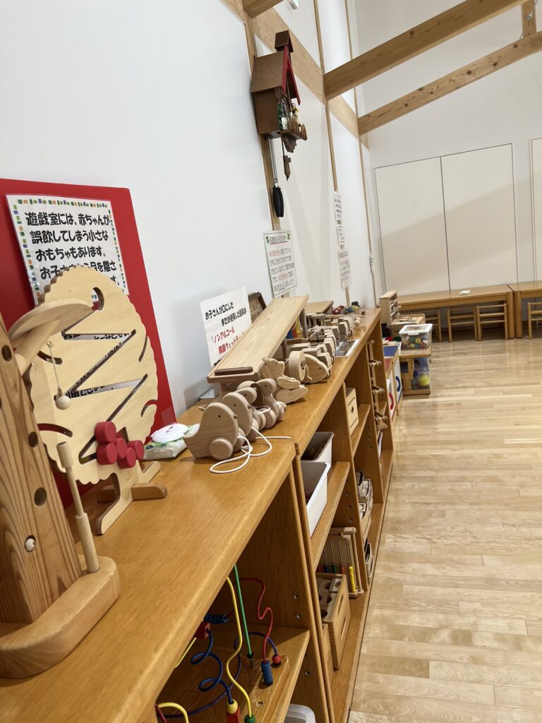 ヒノキのボールプールや滑り台、大量の木の知育玩具が揃っていました。