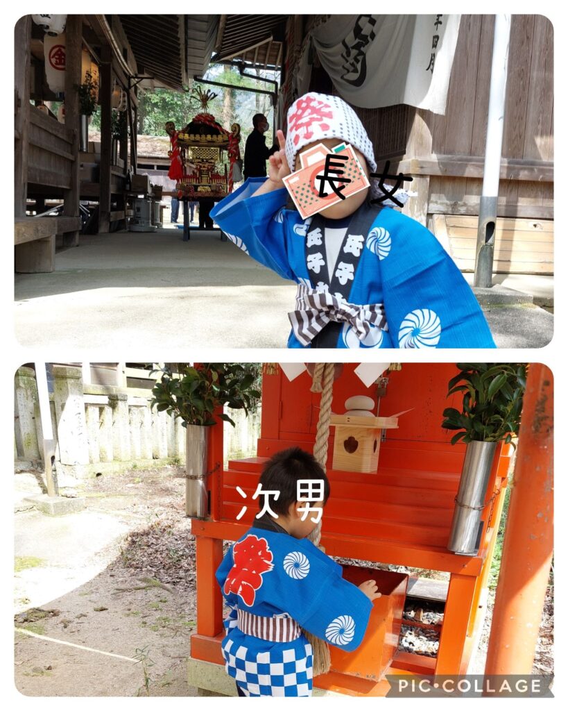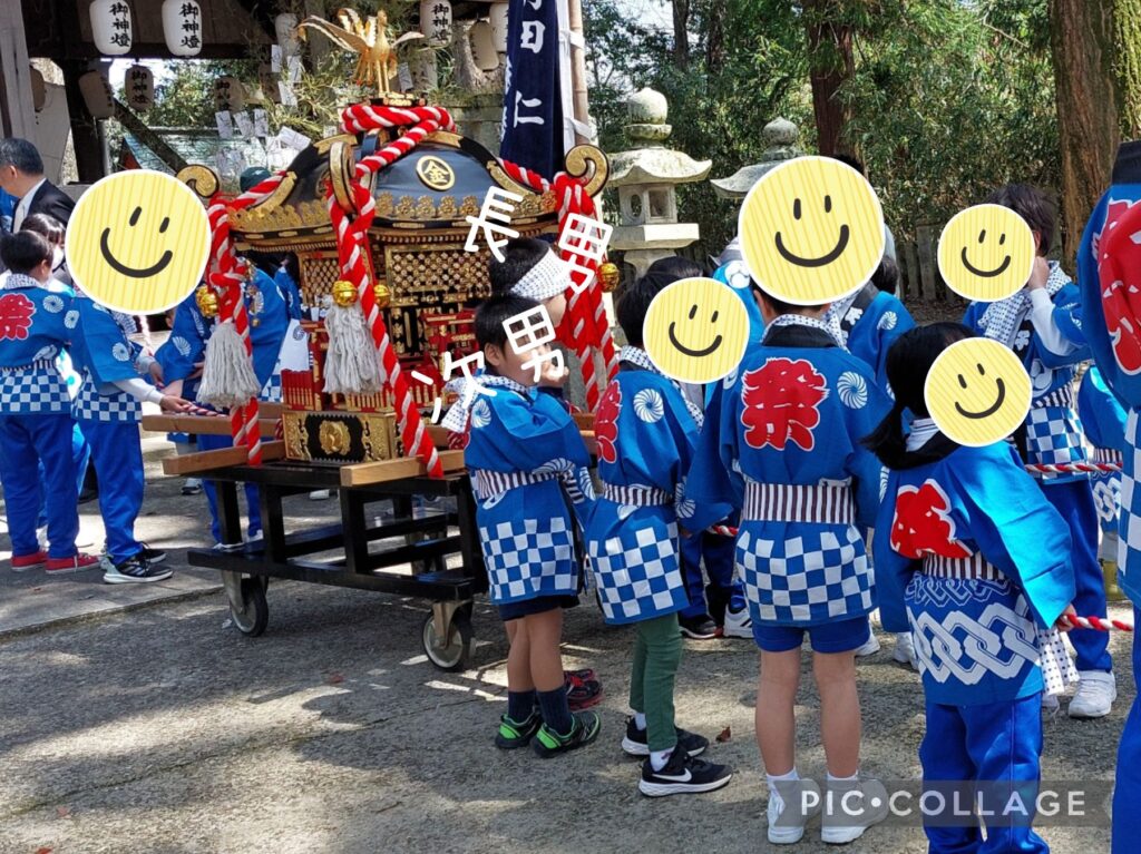 日曜日は春の祭りがあり、こどもたちも御神輿を引きに行きました。