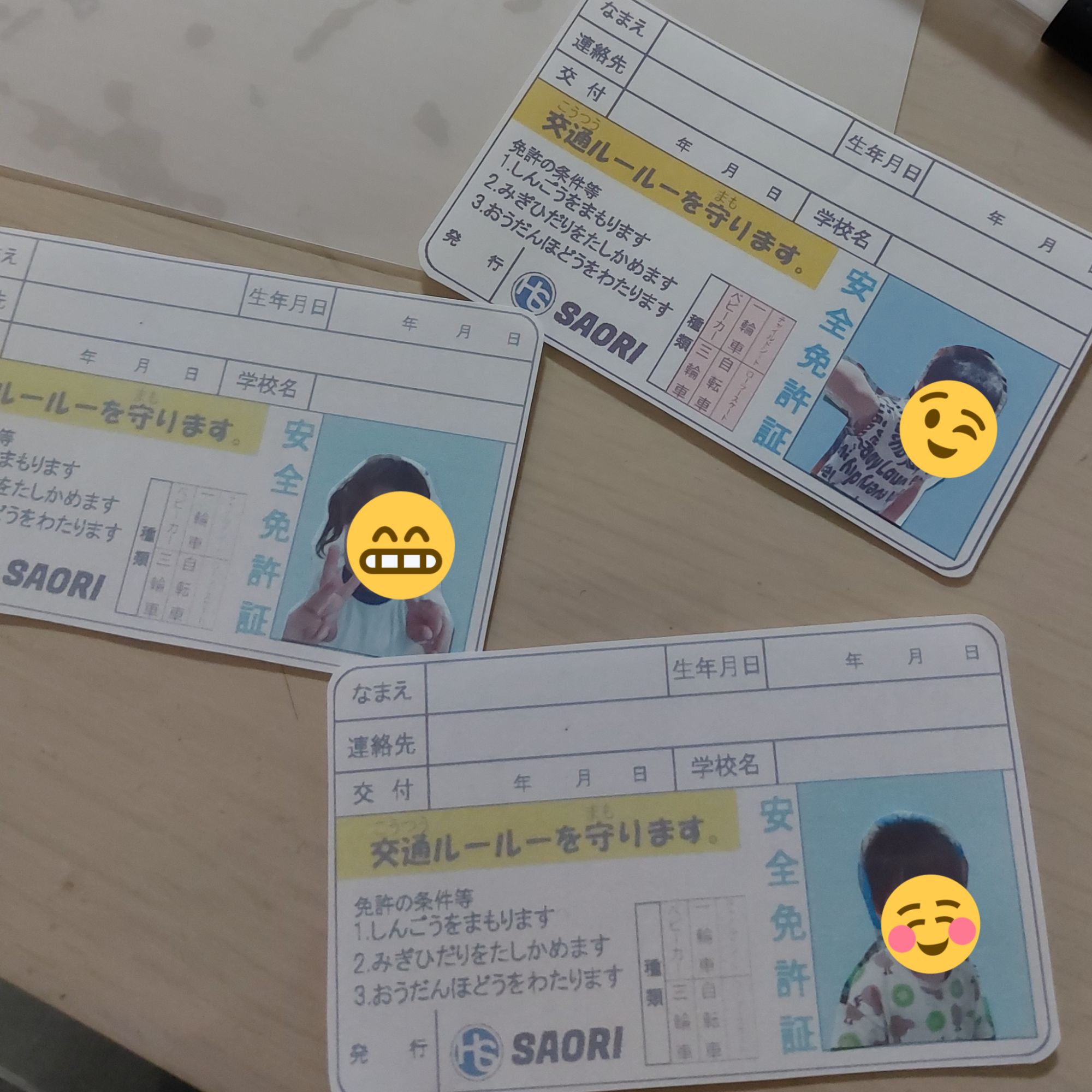 休み中にこども免許証作りました!(*´ー`*)発行のロゴは、家で作ったのでサオリオリジナル。