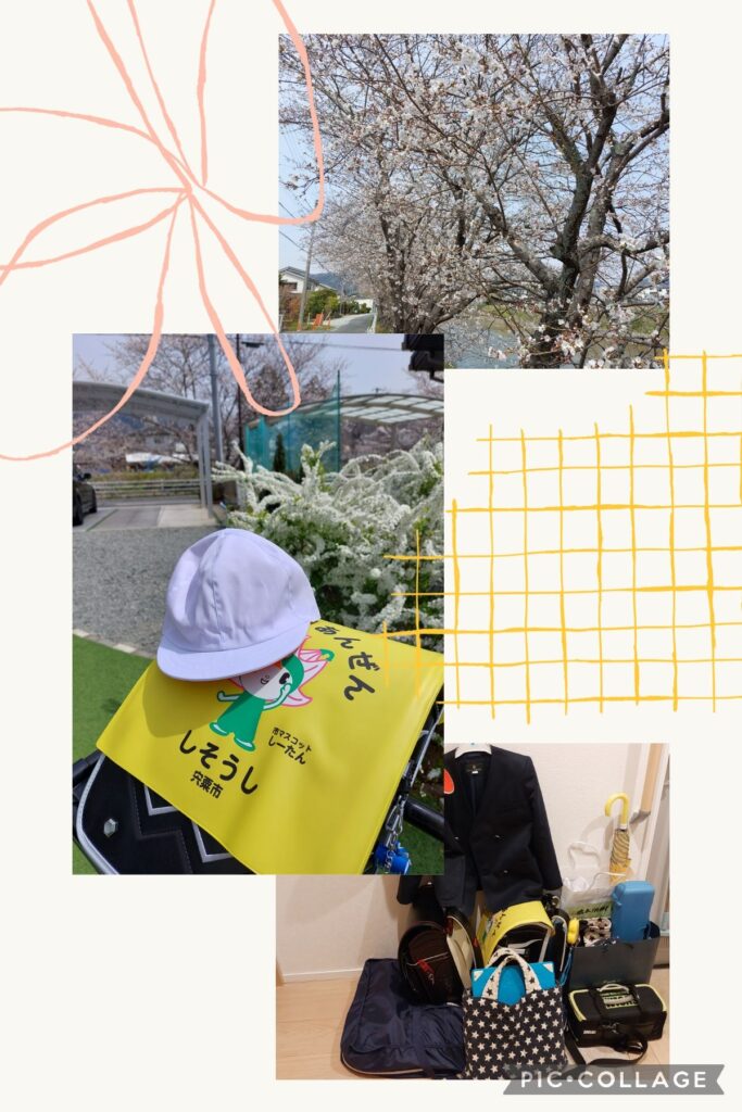 入学式前日の玄関の様子。忘れないように全て準備して、玄関に置いてました。