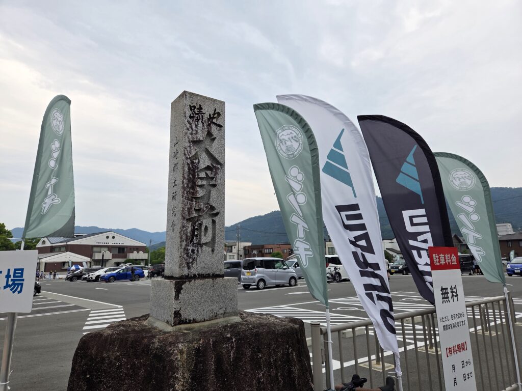 宍粟市役所前を通過し、全員で無事に観光駐車場に到着。