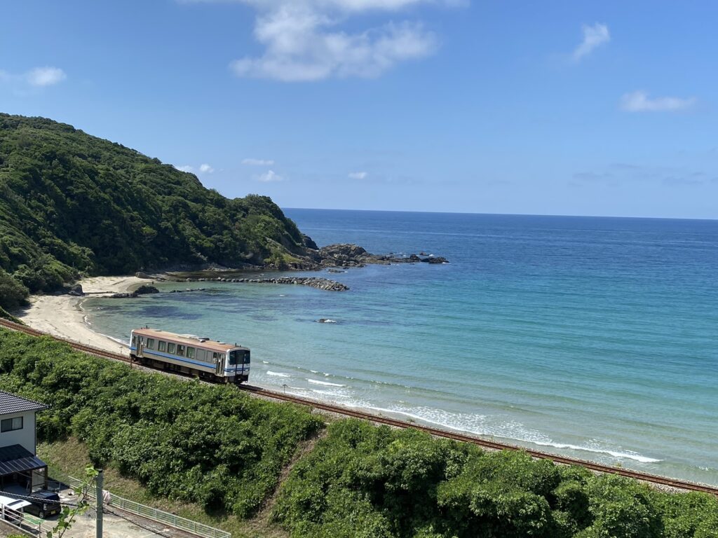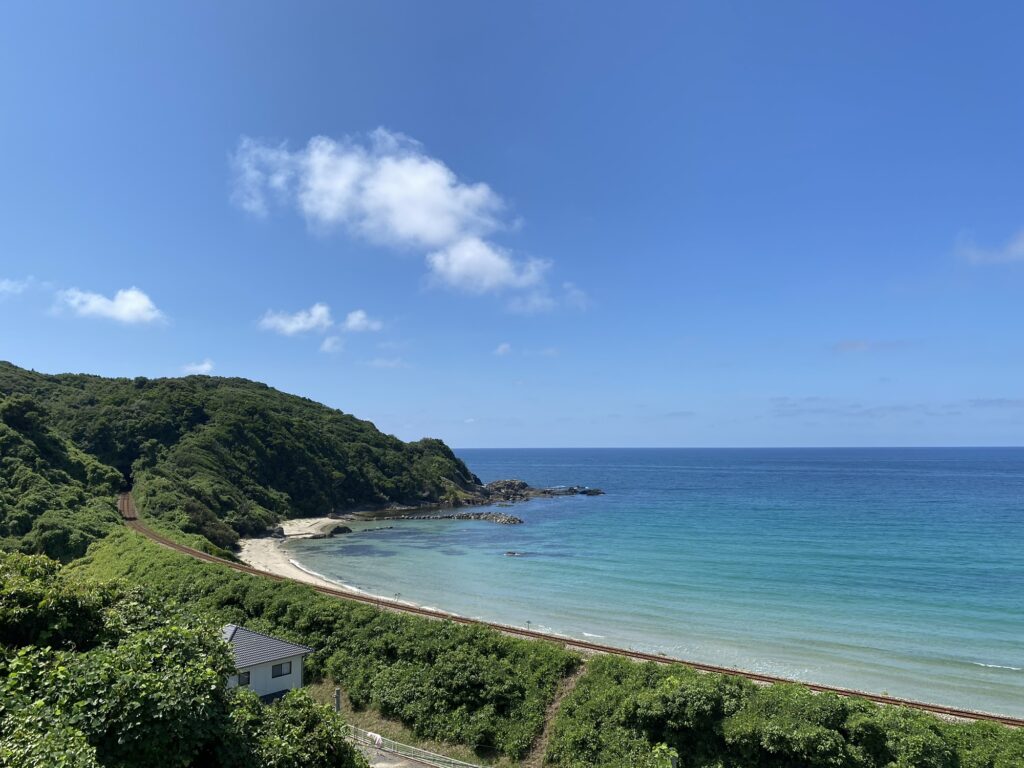 This is Hagi’s coastline. The Sea of Japan is crystal clear! I’m amazed!