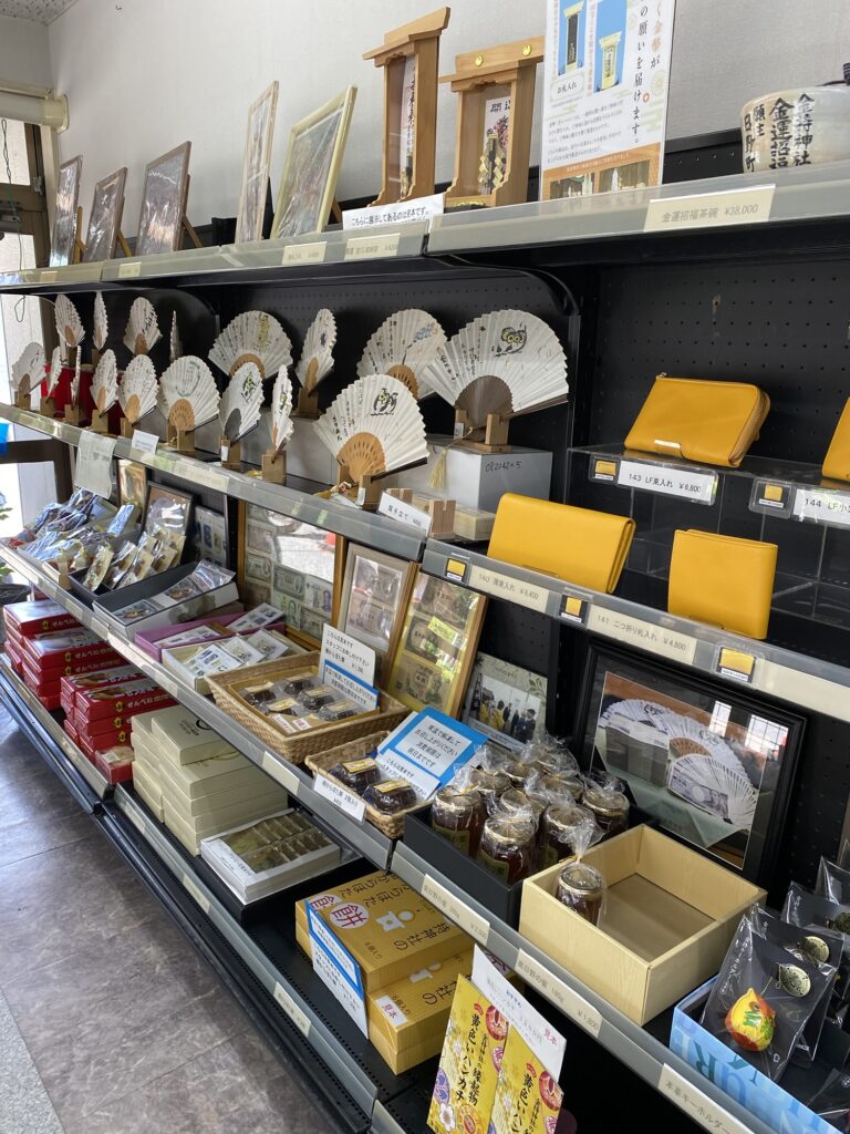 The shop in front of the shrine has items that seem likely to bring wealth, and it has the feel of a small kiosk.