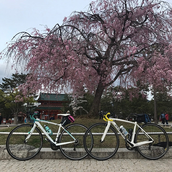 嵐山に向かう途中、偶然出会った女性ローディーさんに