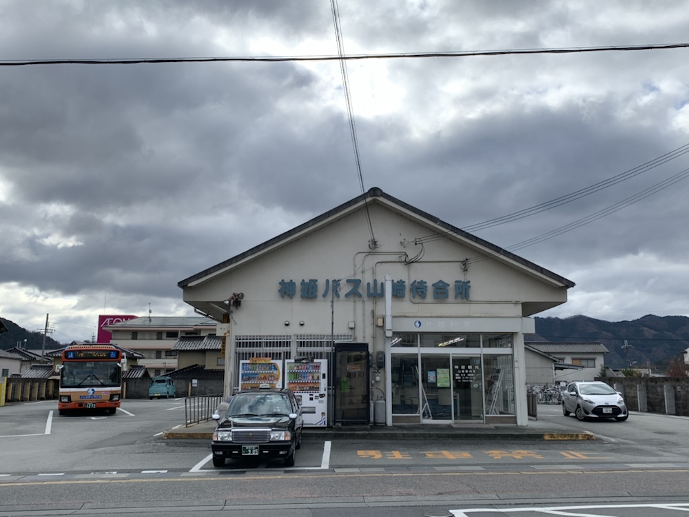 姫路駅から山崎行きの神姫バスに乗ると、ココが終点です。この山崎待合所から、千草方面、波賀方面、一宮方面へと輪行OK!