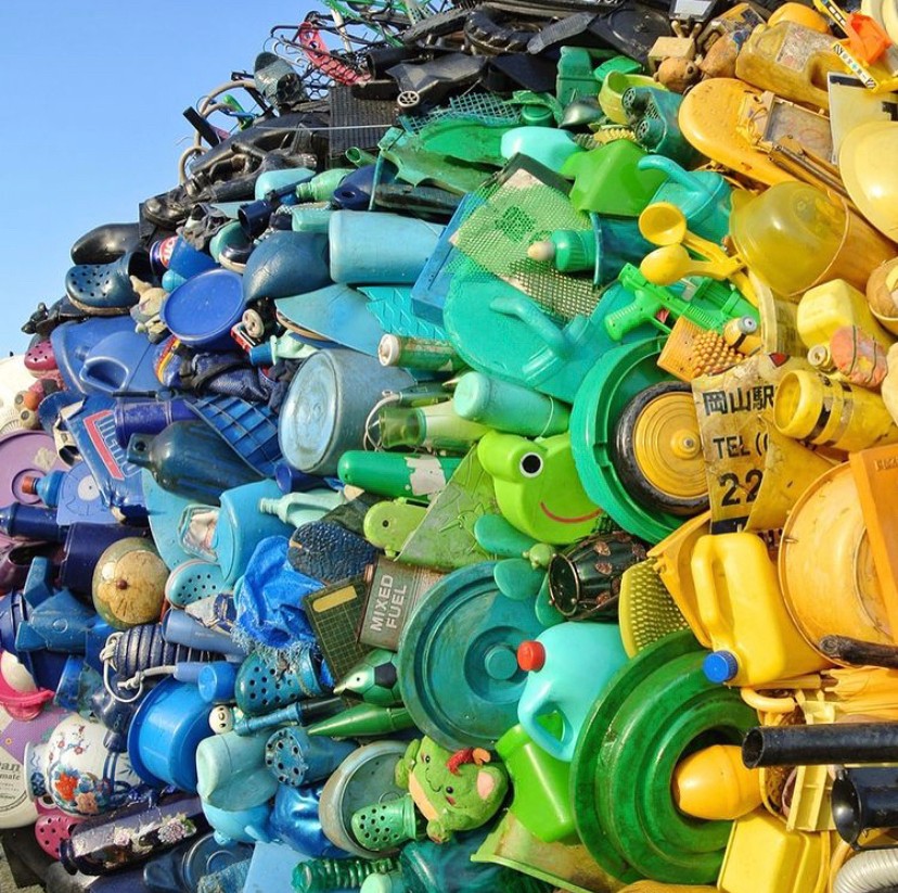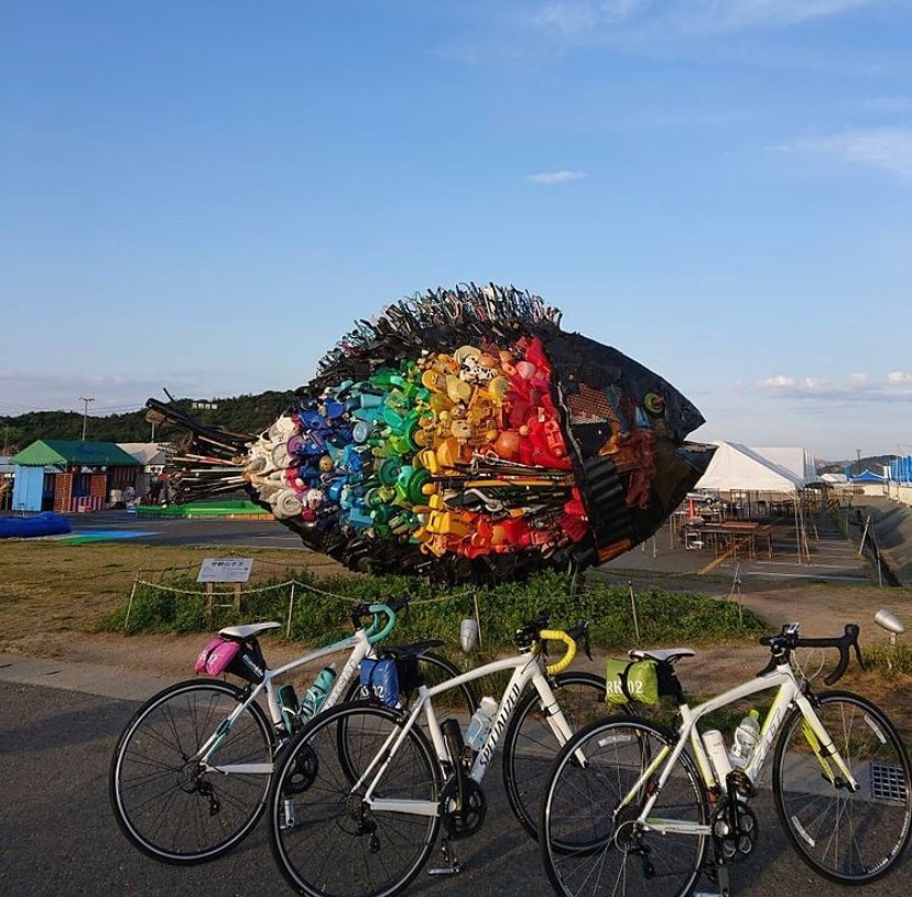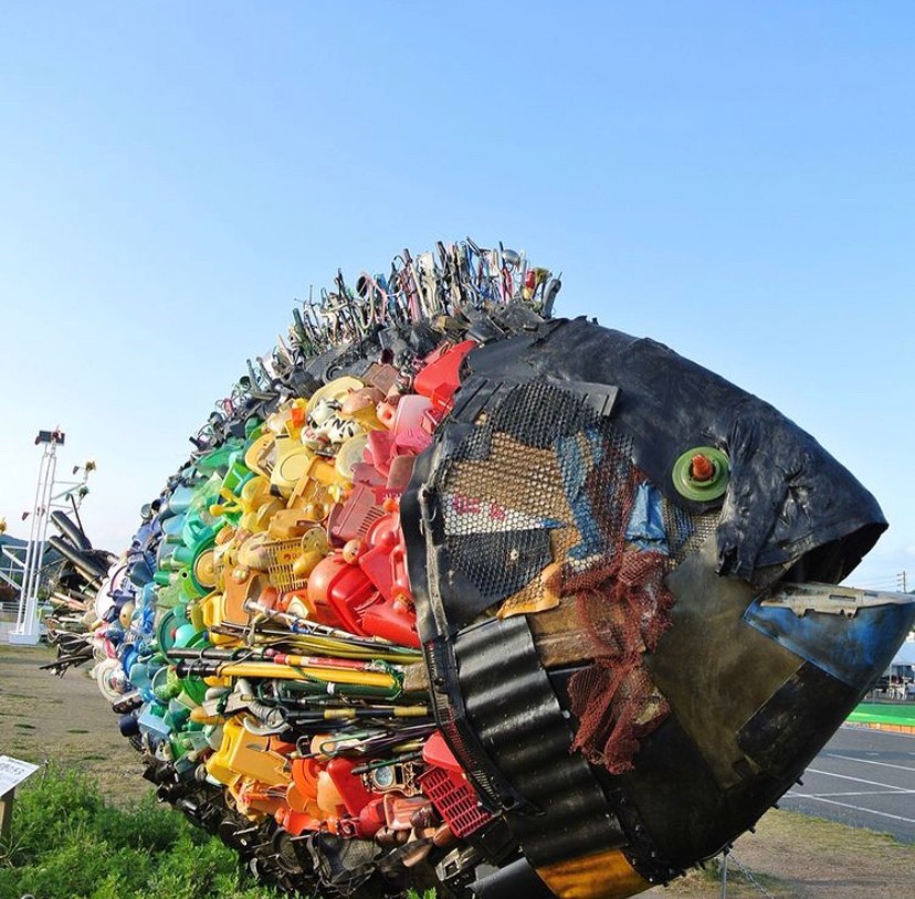 宇野港周辺で集められた、ゴミや漂着物で作られているようです♪
