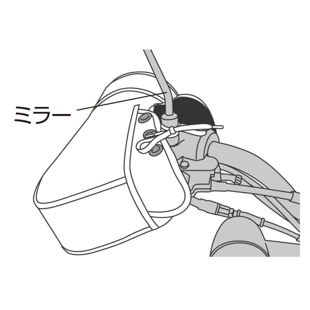 | 注意 | ・ハンドルカバーをヒモで固定するとき、各種ワイヤーを一緒に固定しないでください。アクセル、ブレーキなどのききが悪くなります。 ・本製品は一部メッシュ生地を使用しています。防水機能はございません。 ・雨ざらしや直射日光の当たる場所で放置しないでください。退色や変形、劣化の原因になります。 ・ハンドルカバーが濡れてしまった場合はハンドルから外し、日陰の風通しのよいところで自然乾燥させてください。 ・ハンドルカバーが汚れた場合、中性洗剤を含ませた布で軽く拭き取ってください。洗濯機のご使用はお避け下さい。 ・走行前に装着がしっかりされているか確認してください。ヒモが緩んでいると走行中にハンドルカバーがハンドルから抜けてしまう可能性があり大変危険です。 |