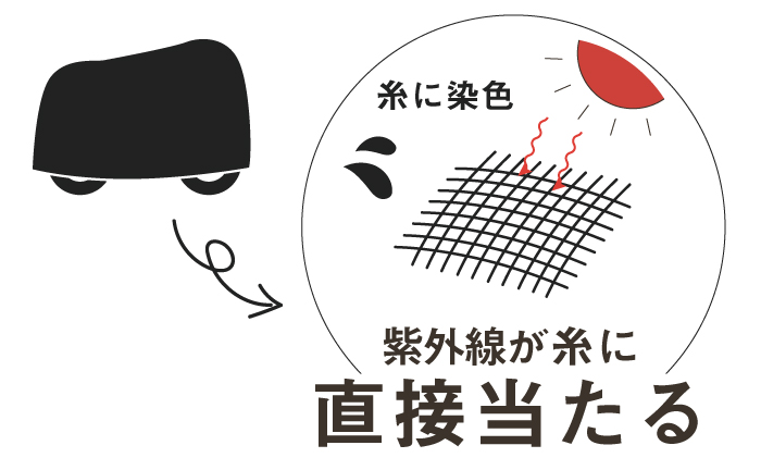 | 注意 | ●バイクカバーは消耗品です。経年による劣化等は避けられません。生地の破れなどが出てきた場合は、新しい製品に買い換えていただきますようお願いいたします。●本製品は盗難防止も目的としておりますが、完全に防げるわけではありません。●紫外線や酸性雨などの自然現象及び使用状況で耐久性が損なわれることがあります。●鋭利な突起物などでひっかいたりしないでください。●炎天下に放置しないでください。内部が高温になり、車体に悪影響を及ぼす場合がございます。●火気の近くでは使用しないでください。本製品は不燃性ではありません。●生地には撥水加工を施していますが、徐々に弱くなります。必要に応じて市販の撥水スプレーをご使用ください。●生地には撥水加工を施していますが、縫製品のため完全防水ではありません。濡れた状態で放置しておくと変色や雨水の侵入などカバー本体に悪影響を与える原因となりますので、こまめにカバーを干してお使いください。●濡れたり汚れたバイクにそのままカバーをかけないでください。塗装の劣化、サビの原因となります。●大きなシーシーバー(バックレスト)やアンテナなどは外してからご使用ください。 |