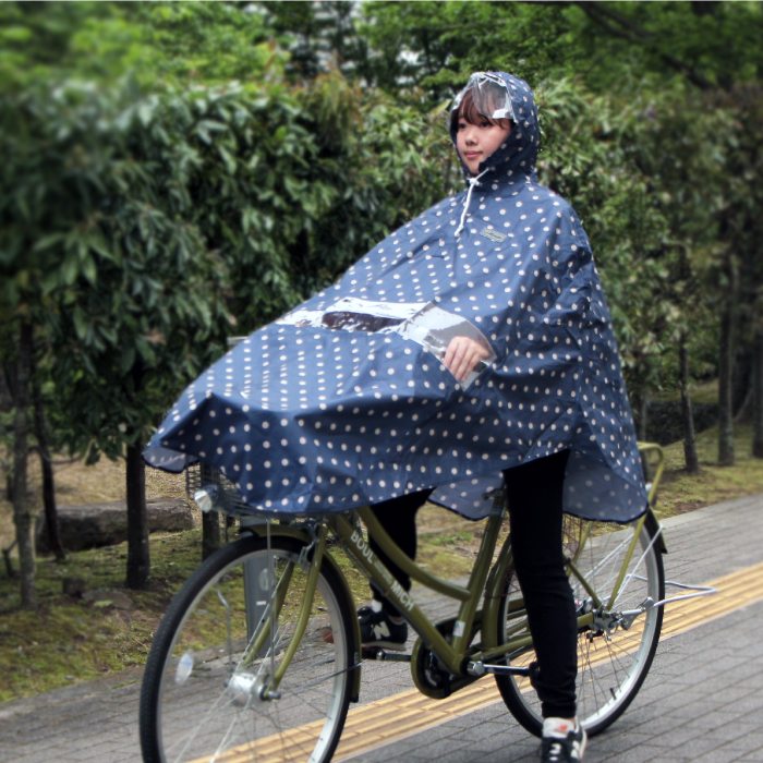 突然の雨にも「サッ」っと着られる。雨の日の自転車走行を一番に考えた自転車走行専用のポンチョです。