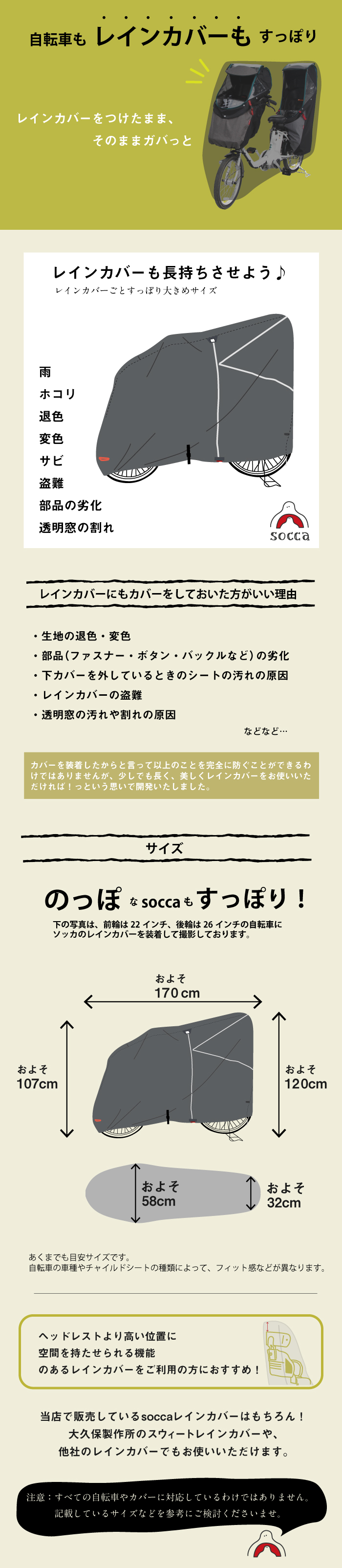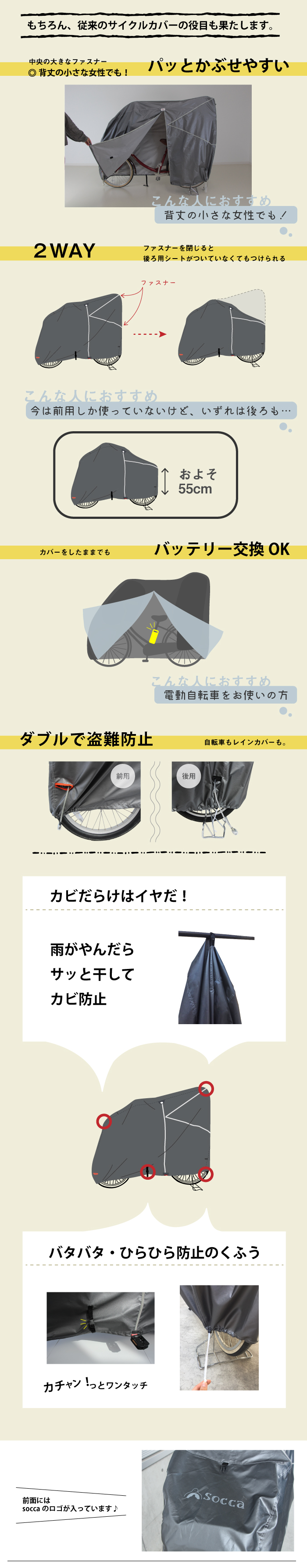 | 商品名 | soccaソッカ レインカバーを付けたまま被せられる 自転車 カバー |