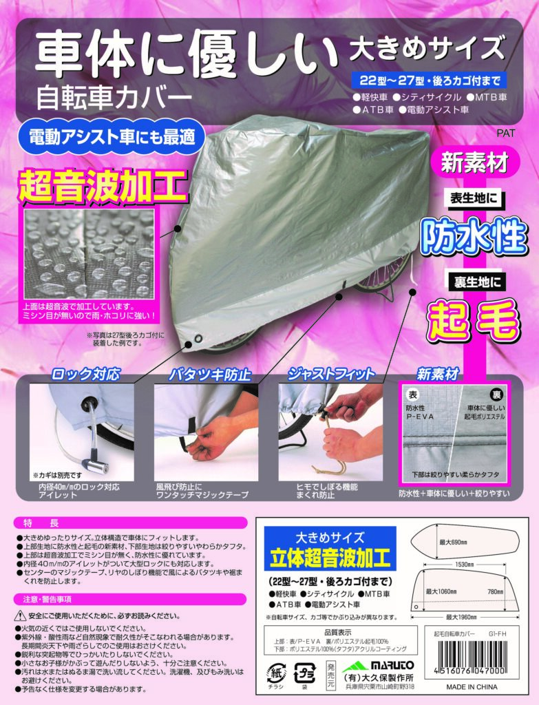 商品の特徴・大きめゆったりサイズ。立体構造で車体にフィットします。
