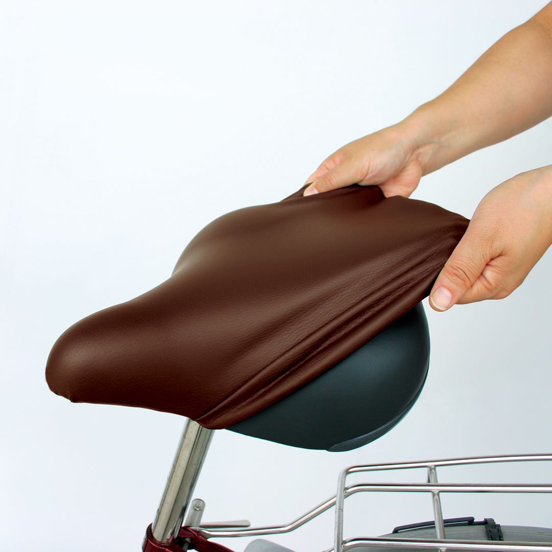 サドル下側に両面テープを貼り、カバーのしわを伸ばしながら貼るようにして被せると、よりきれいに装着できます!