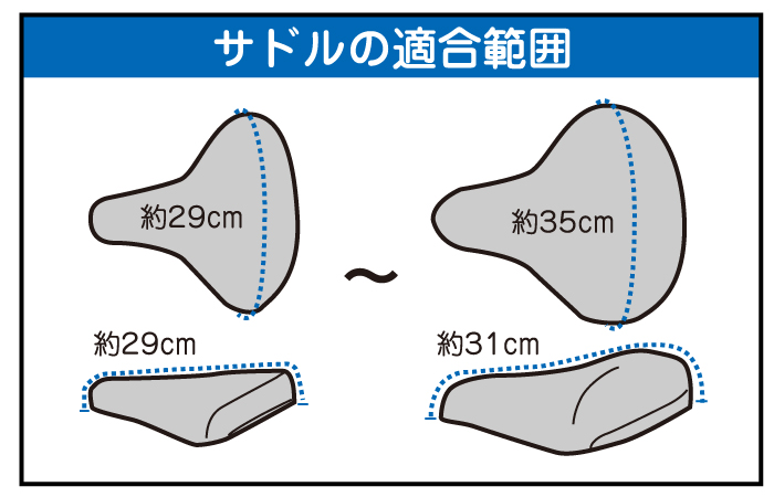 | 適応自転車サイズ | 一般自転車用 ※スポーツ車及び、特集サドルや大型サドルには取り付け出来ません。 |
