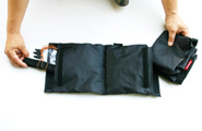 ![]() | 端から丸めてベルトで絞ればボトルゲージに収納 |