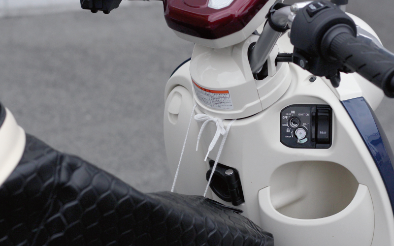ヒモで車体に取り付ければ、