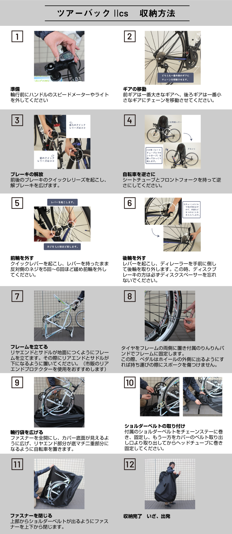 | 商品の特徴 | ファスナータイプ(スタンダード) 縦型タイプ 軽量・コンパクトなサイズの輪行袋 |
