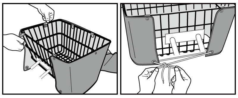※余ったヒモは車輪に巻き込まれないように、カゴに結び付けるなどして短くしてご使用ください。