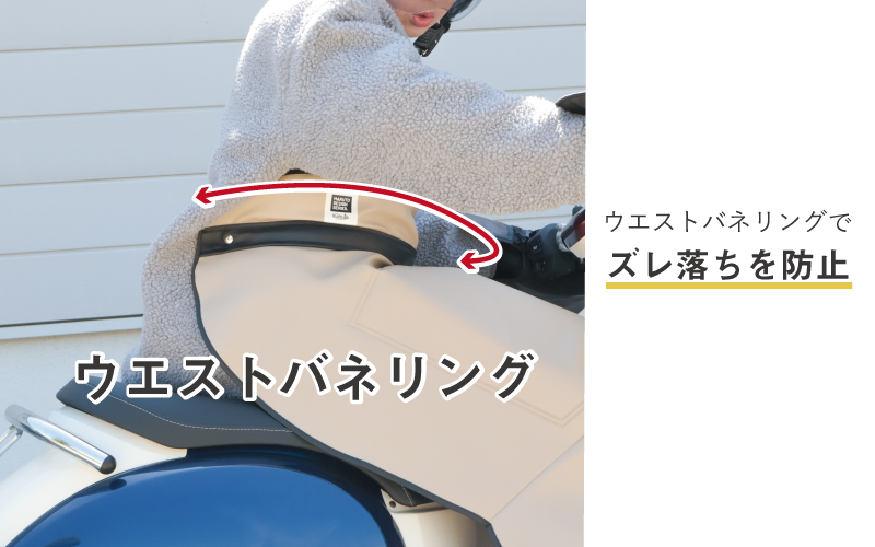 | 商品の特徴 | 足まわりの冷たい風をブロック! ・保温効果…フレンチパイルと発泡ウレタンの2重裏地 ・防水性能…裏地の縫い付けにミシン目がない高周波加工 ・脱着簡単…腰にフィットするスプリング内蔵 |