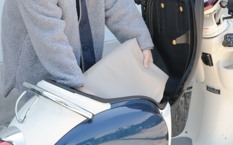 夏場など使用しないときは、コンパクトに畳んでメットインに収納することができます。※メットインの形状によっては収納できない場合がございます。