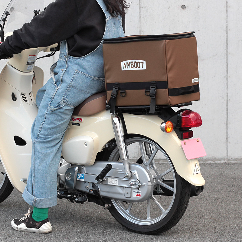 | Caution | ・Please be careful to affix the mounting belt so that the excess part does not get caught in the tire when you attach. ・Please do not drive faster than the legal speed limit. Wind pressure or other factors may cause the bag to come off or be damaged. ・Do not attach to rear racks smaller than the Super Cub or Cross Cub original rack (30cm x 40cm). ・Please do not put more than 20kg of luggage in the box. ・The load capacity of the lid is less than 4 kg. Placing a load exceeding 4 kg may cause it to lose its shape or be damaged. ・Placing luggage on the lid of the box makes it difficult to operate the zipper. Please operate the zipper carefully, as it may be damaged if it is forced to open and close. ・Always open and close the zipper by holding the puller. Please attach the product in a position that does not interfere with driving. ・This product is a sewn product and is not completely waterproof. If rain is expected, it is recommended that the items in the box be packed in a waterproof bag or similar in advance. ・Even if a rain cover is attached, there is a chance that rain may still get in. ・Always check that each part is correctly attached before driving. In particular, check for any looseness in the mounting parts. If any of the parts are loose before driving, there is a chance that the belt may get caught in the tires or cause damage to vehicles behind you. ・Do not scratch with pointed objects. ・Although this is a generic product, it may not be able to be installed depending on the motorcycle type and specifications. ・Please note that slight discoloration is inevitable, even during normal use, due to the effect of UV rays and lighting on the product. ・The product will deteriorate over time. If you see any tears or cracks in the fabric or parts, please purchase a new one. ・Please do not swing the box around as it may cause damage. ・Please be careful not to let gasoline or oil get on the product. It may cause deterioration of the fabric and clasps. ・Wipe off dust and dirt regularly because they may cause discoloration and deterioration ・The color of the product may get on other materials if in too close contact. ・If the product touches hot parts such as engines and mufflers, it may melt. ・Both the box and the rain cover will deteriorate if stored or parked in direct sunlight or exposed to rain, which will cause fading, deformation, rust and mold. Do not leave it attached to the motorcycle for extended periods of time. ・Please avoid leaving the product in places where it may become hot in sunlight, especially in summer. It may cause deformation of the core material and distortion of the box. ・Due to the nature of the material, the shapes of zippers, buckles, etc. may remain on the surface of the fabric, but this will gradually fade and become less noticeable. dle around because it may cause damage. |