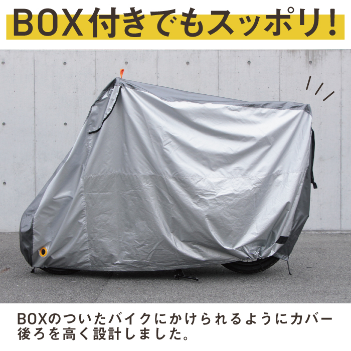 The quick-covering motorcycle cover has a rear zipper so that it can be attached and detached even if the drawstring is tightened.