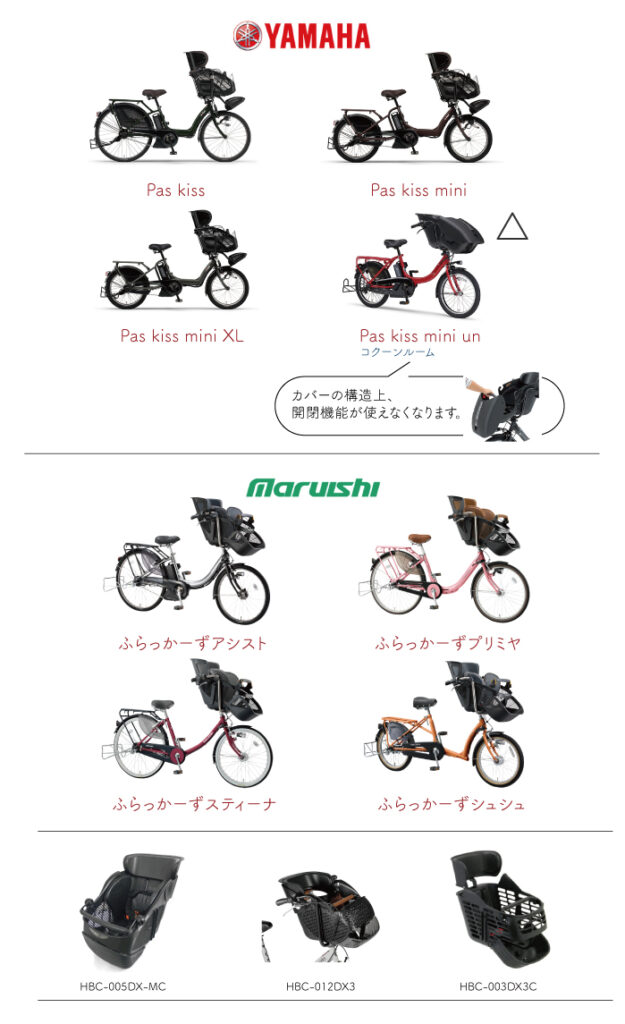 | 適応自転車 | ヘッドレスト付き前子乗せ専用シートがある自転車 ※ヘッドレストがないタイプや、後付けタイプにはご使用できません。 |