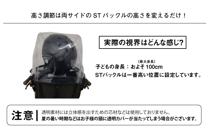 | 用途 | 雨よけ 風よけ ほこりよけ 防水 防寒 日よけ 日差しよけ 熱中症対策 日焼け対策 紫外線対策 寒さ対策 入園 入学 通園 お迎え 送迎 |
