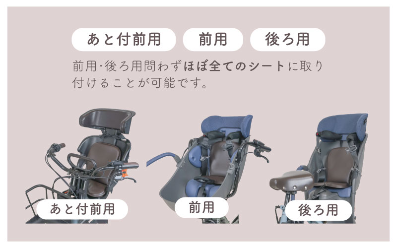 | 適合機種 | 後用/前用/あと付け用 どのタイプのチャイルドシートにも取り付け可能 ※国外メーカーなど特殊な機種には、適合しない場合があります。 |