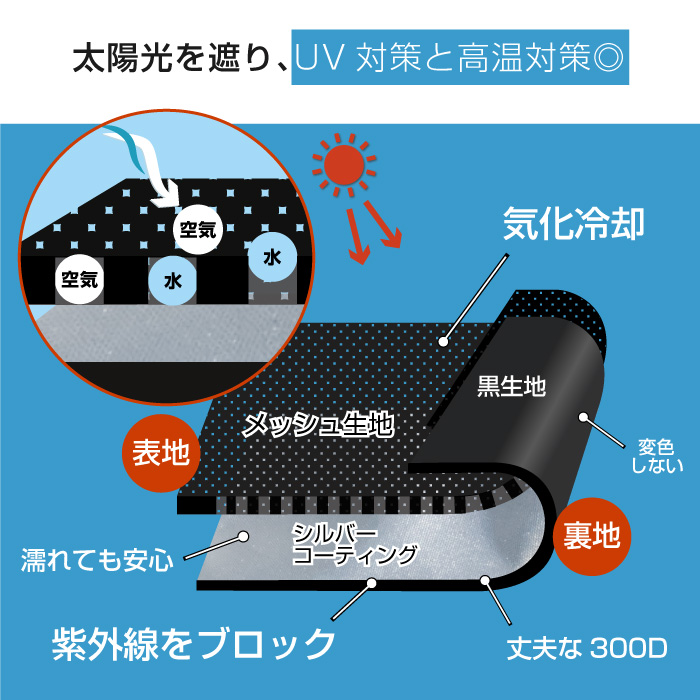| 材質 | 表地:ポリエステルメッシュ 裏地:ポリエステル(特殊遮熱生地) |