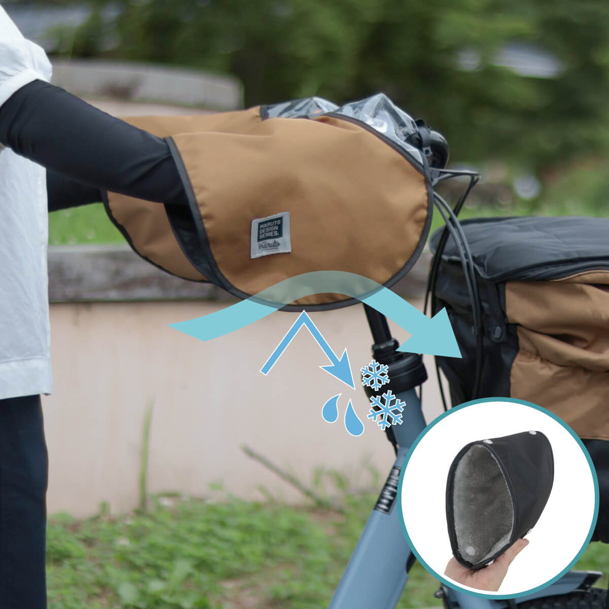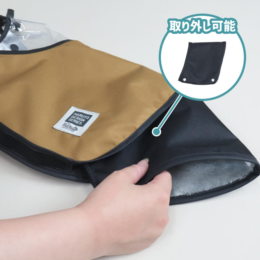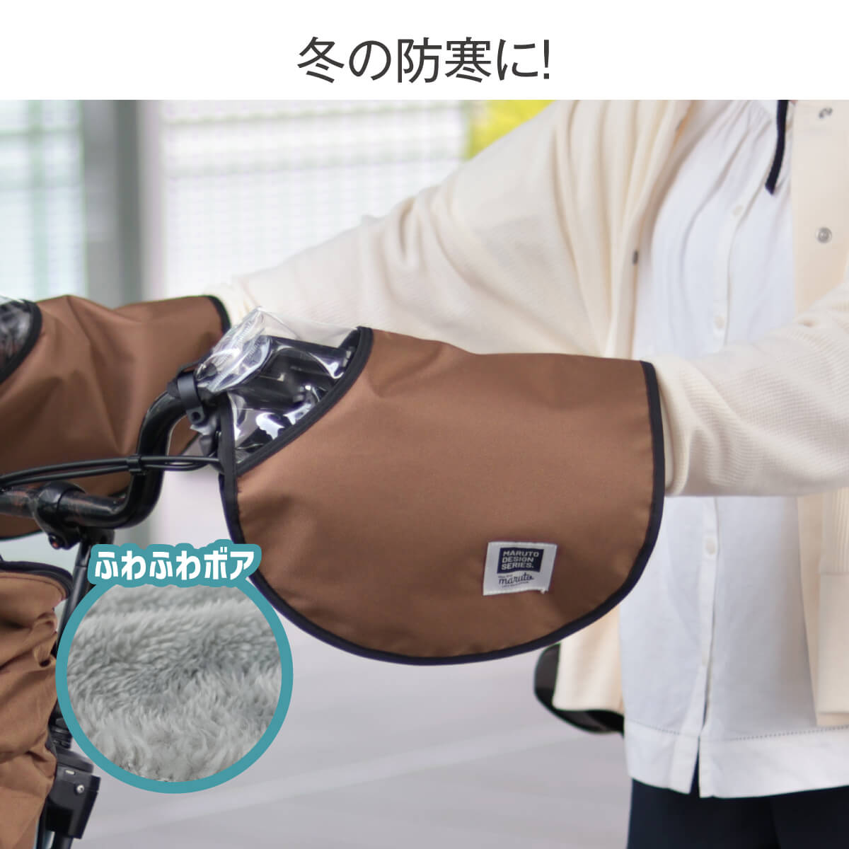 冬はボアを取り付けて手元ぽかぽか。ボアはボタンで簡単に取り外しができます。
