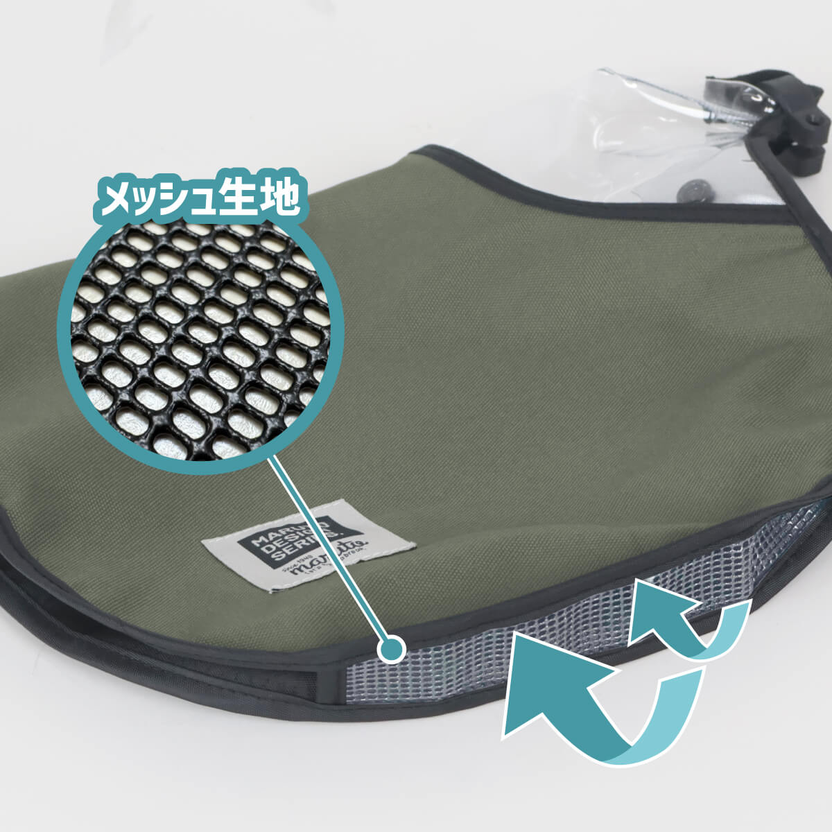 カバー下がメッシュになっていることで風通しがよくなり、ムレずに涼しく快適に使える。