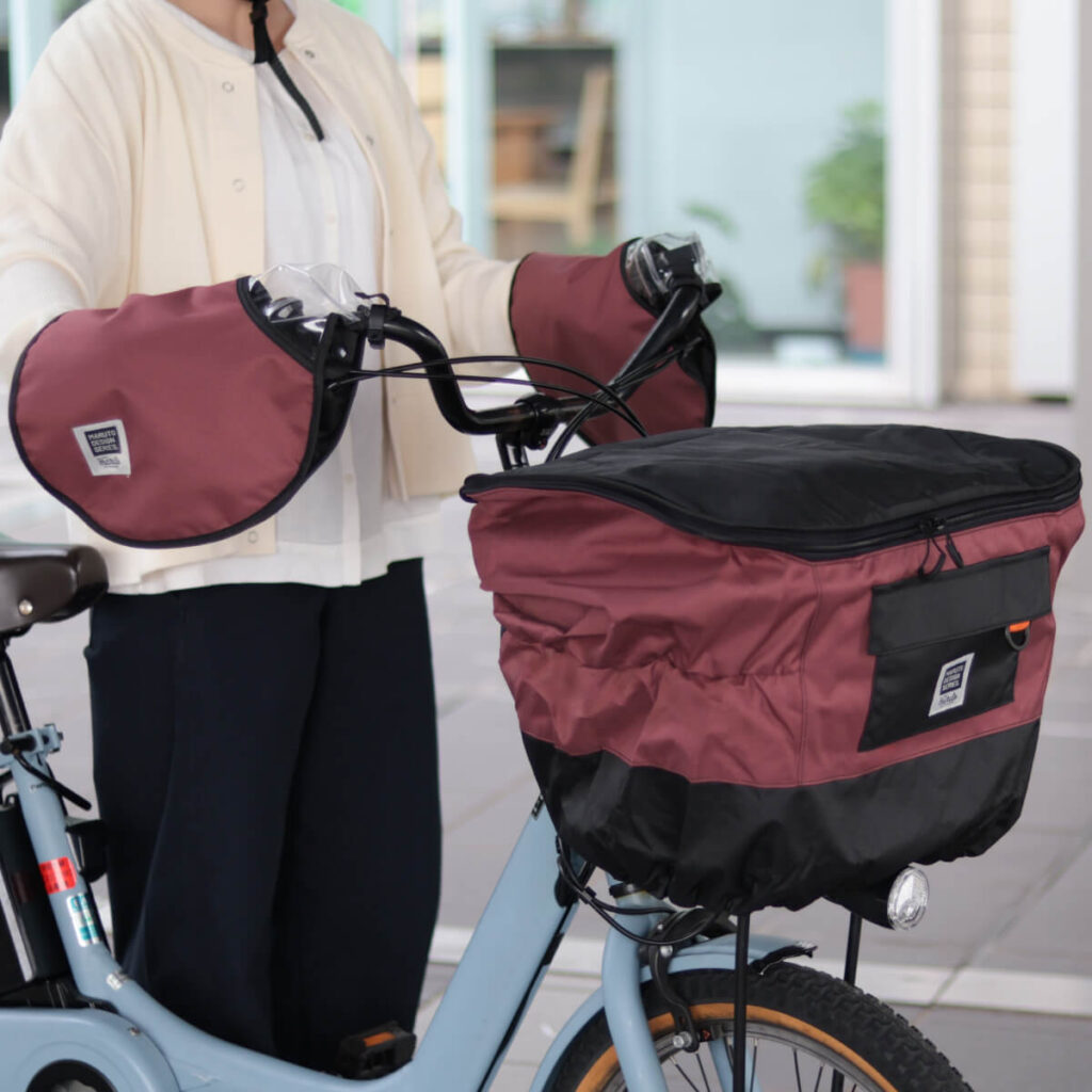 2段式厚手カゴカバーPENTAと同じ生地を使用しているので、カゴカバーとハンドルカバーをおそろいで使用することが可能です。