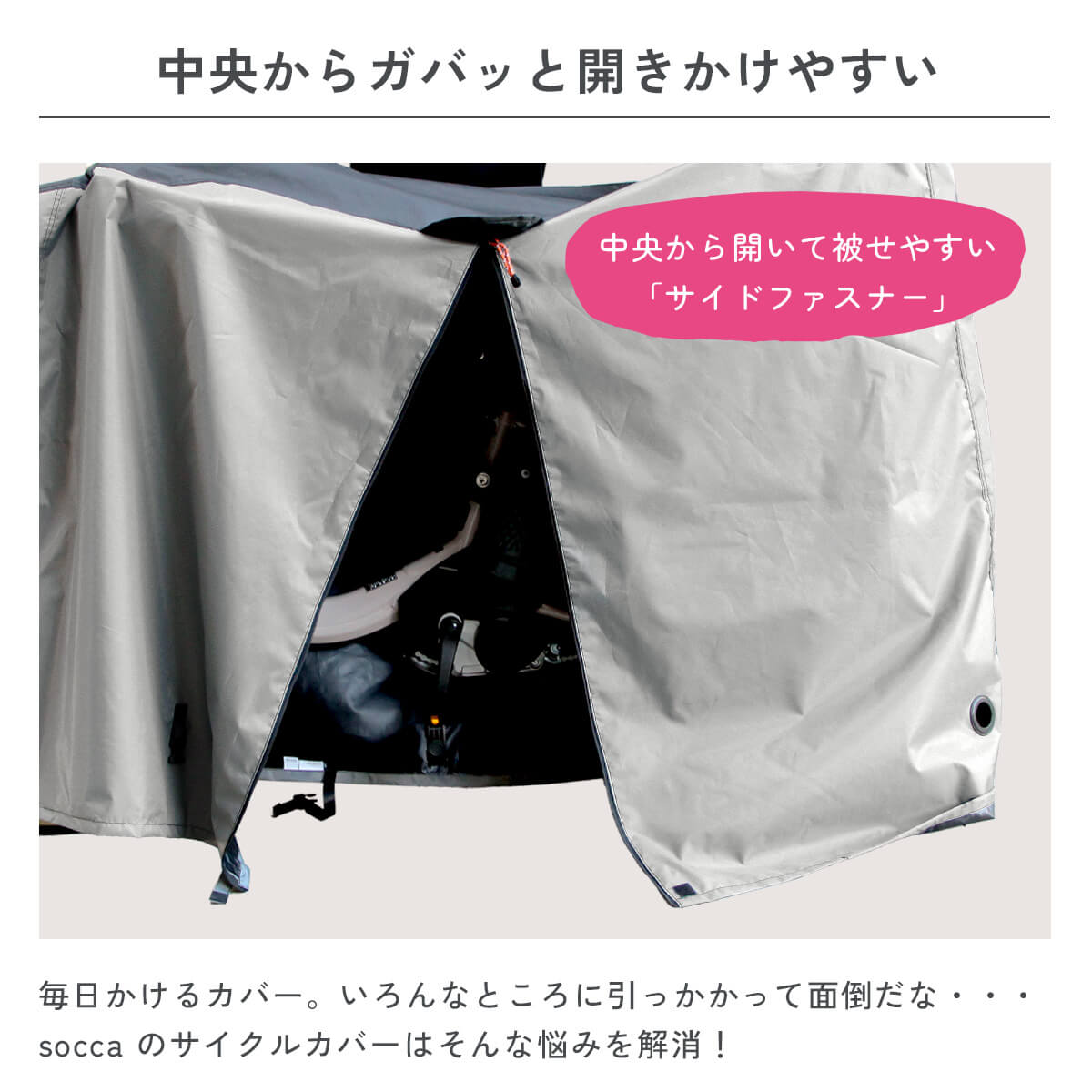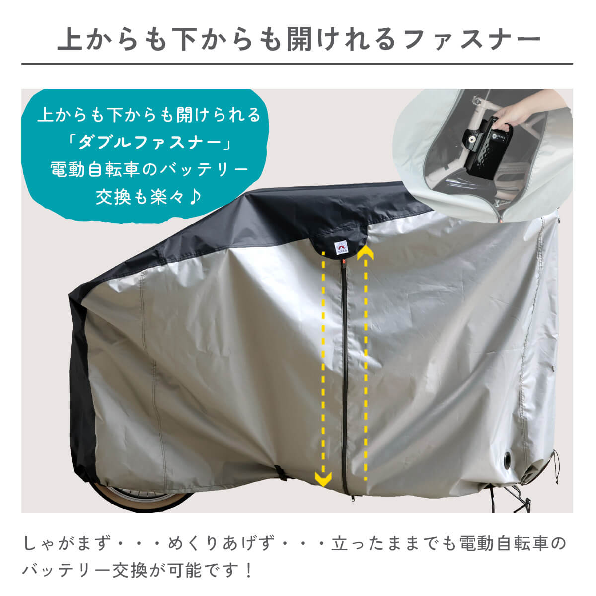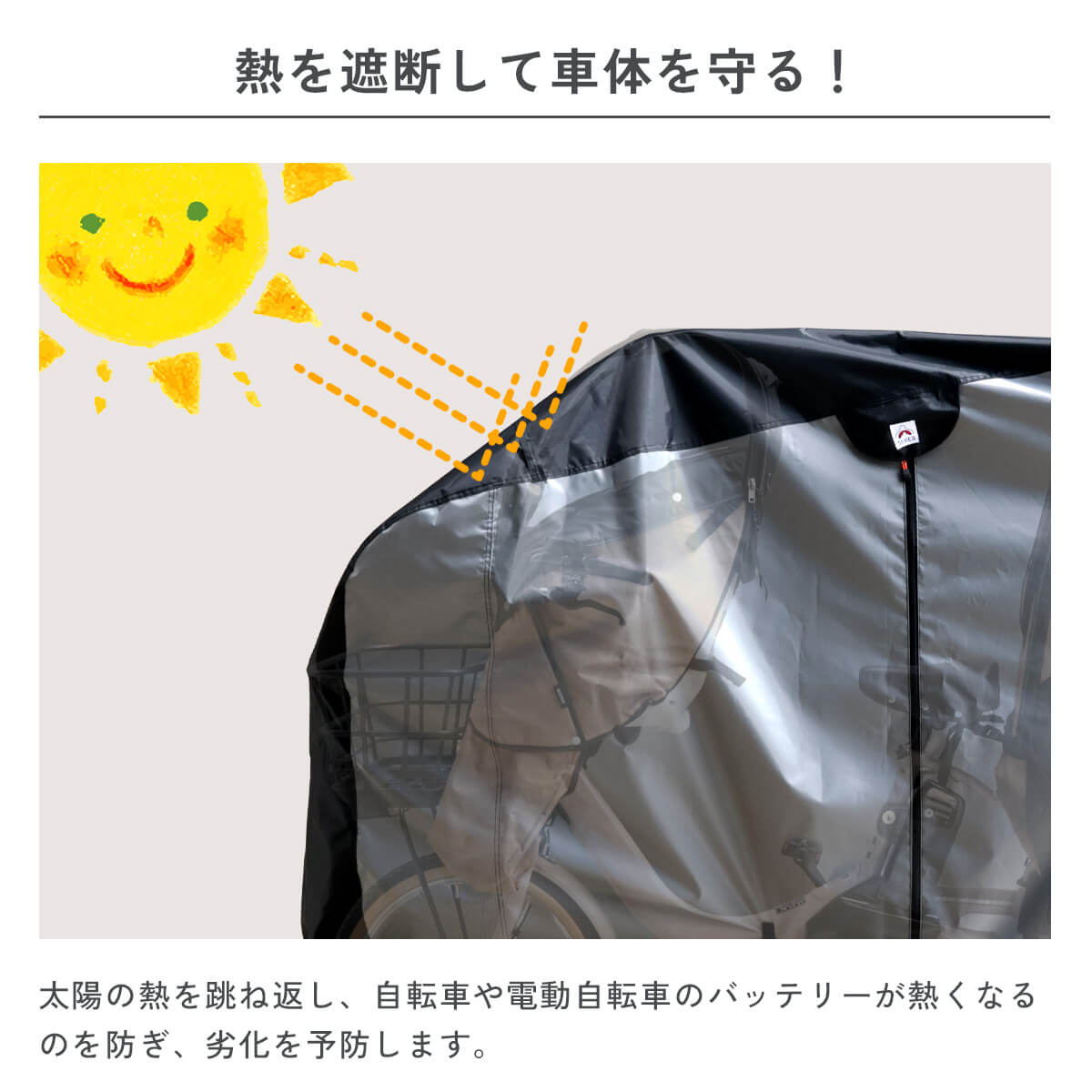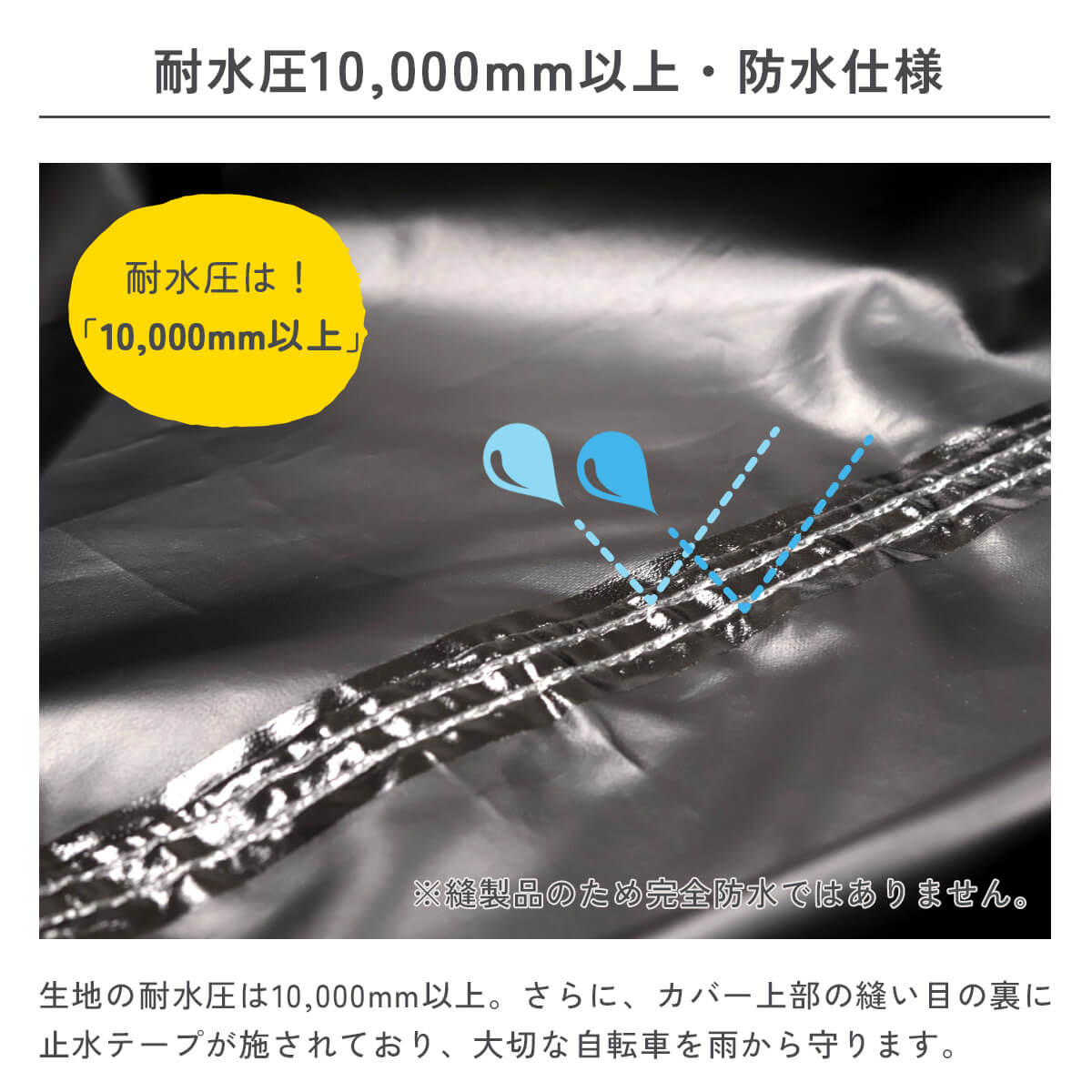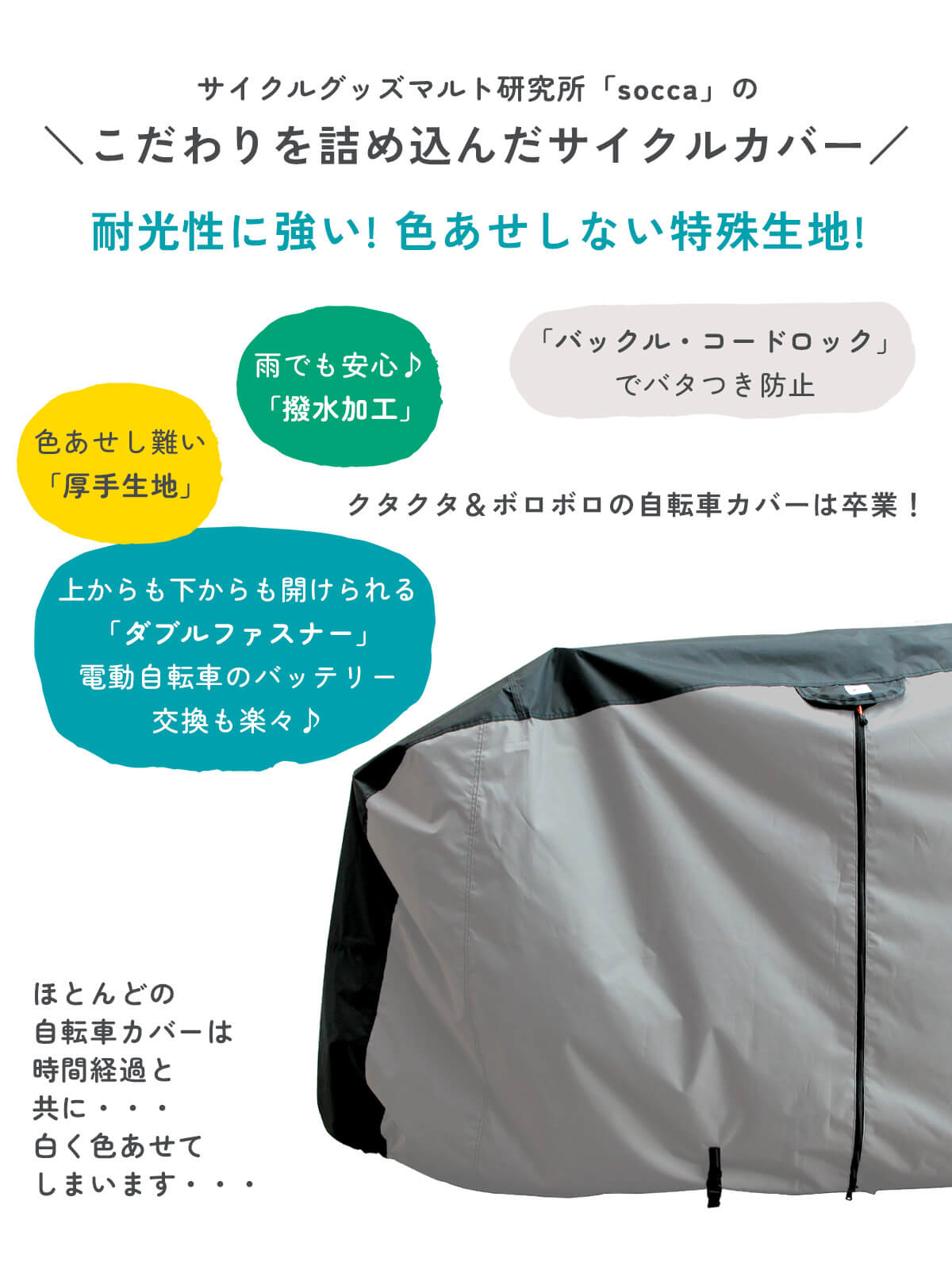 | 特徴 | 退色しづらい生地のサイクルカバーで、自転車もカバーもキレイ長持ち! |