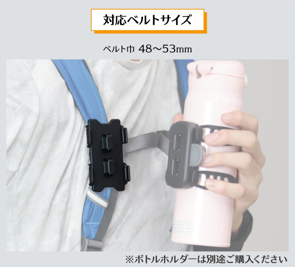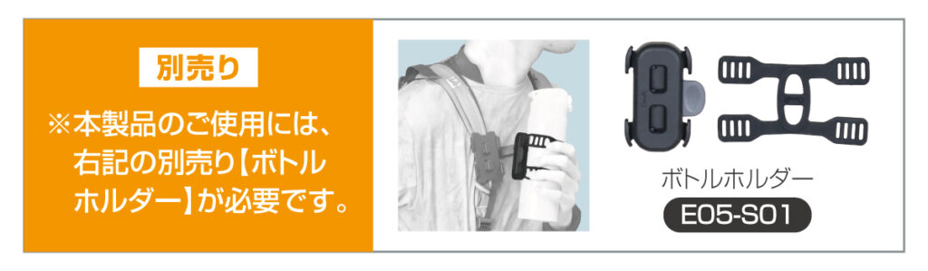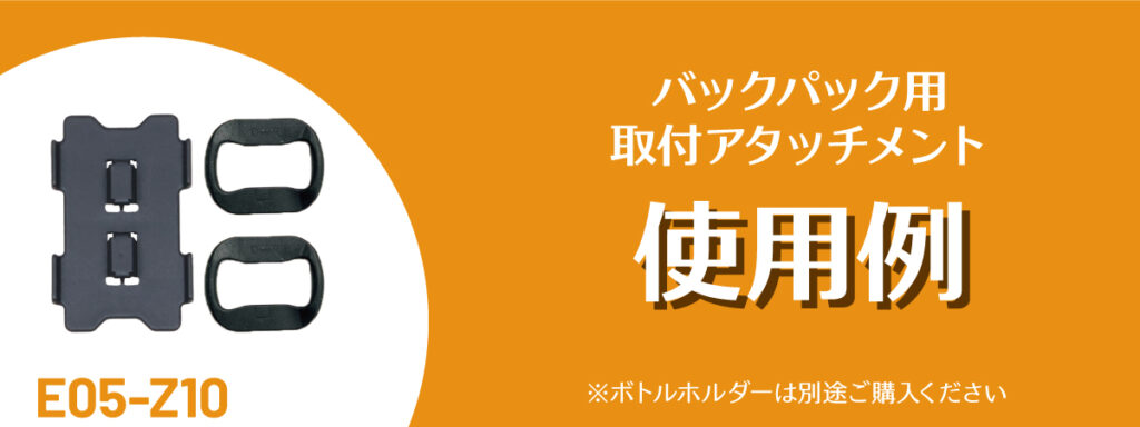 | 用途 | 本品は【ボトルホルダー(E05-S01)】をリュックの肩ベルトに固定するためのアタッチメントです。 |