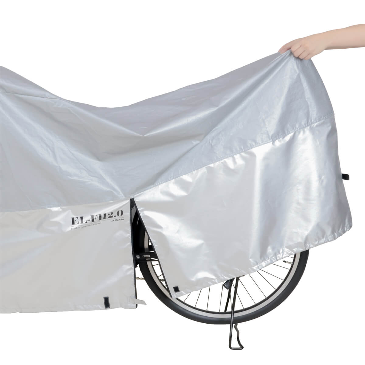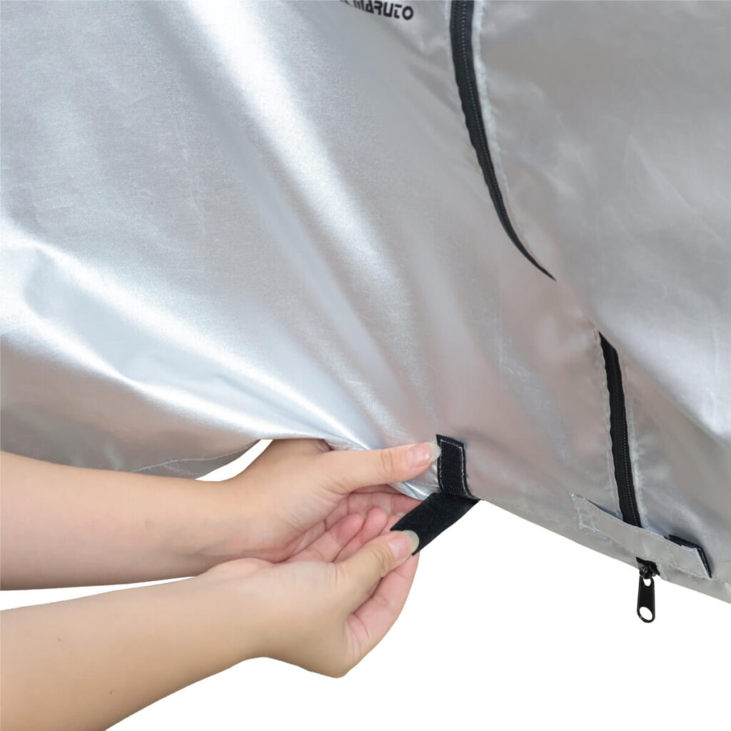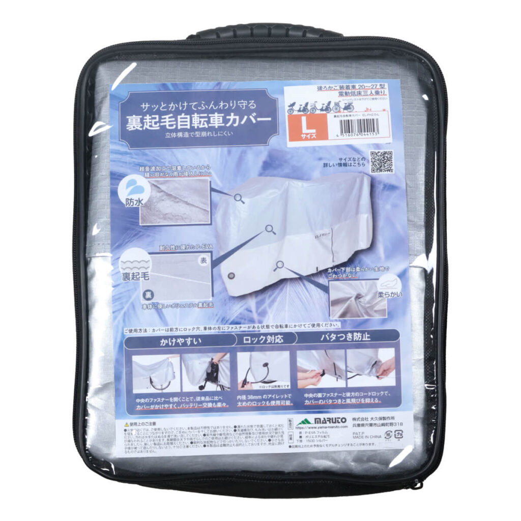 表は耐久性に優れたP-EVA、内側は裏起毛を使っているので、大事な自転車に傷が入りにくくなっています。
